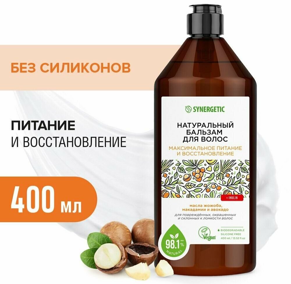 Натуральный бальзам для волос «Максимальное питание и восстановление» 400мл Synergetic