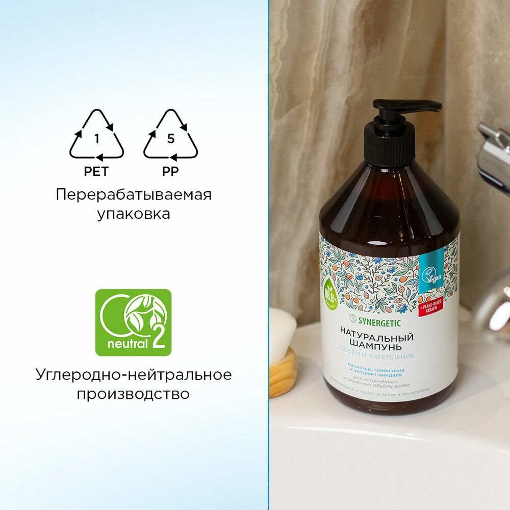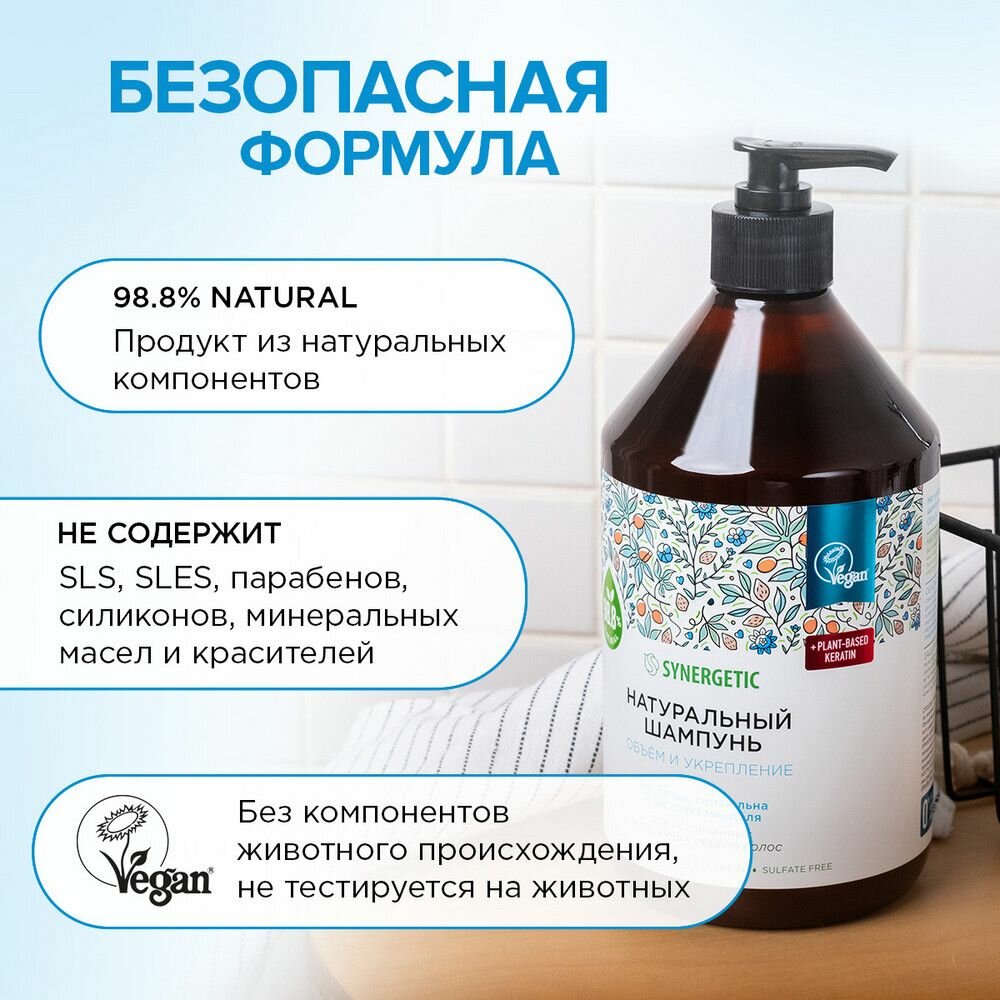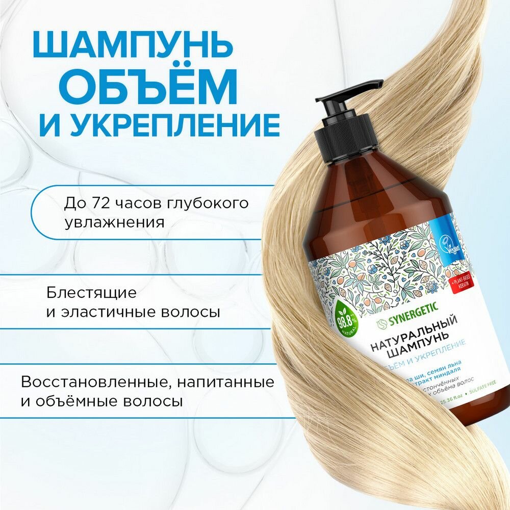 Натуральный бессульфатный шампунь «Объём и укрепление волос» 400мл Synergetic