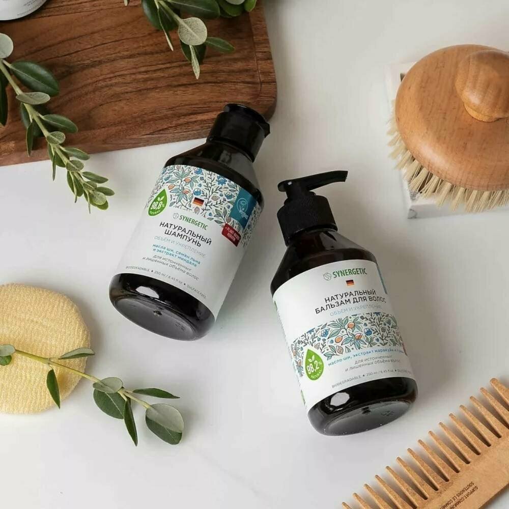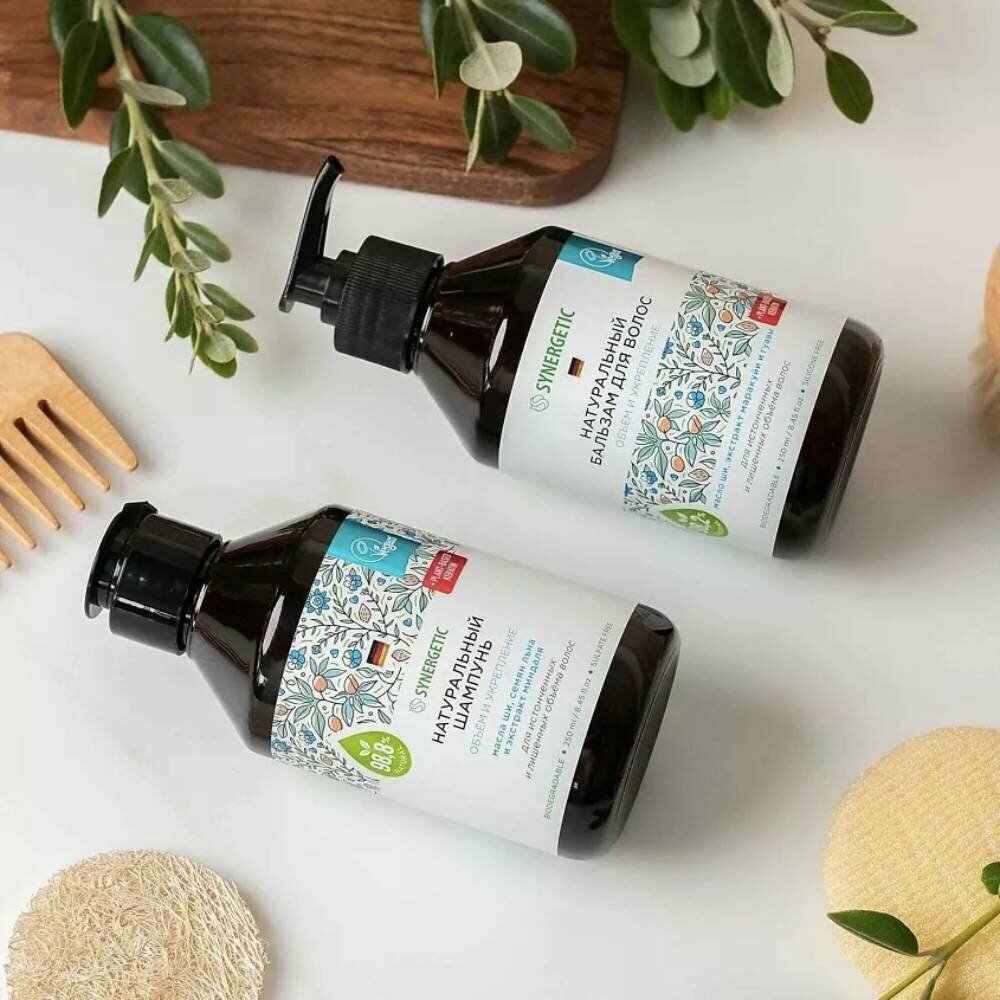 Натуральный бальзам для волос SYNERGETIC «Объем и укрепление» — эффективное средство для ухода за истонченными и лишенными объема волосами — более чем на 98% состоит из натуральных компонентов.