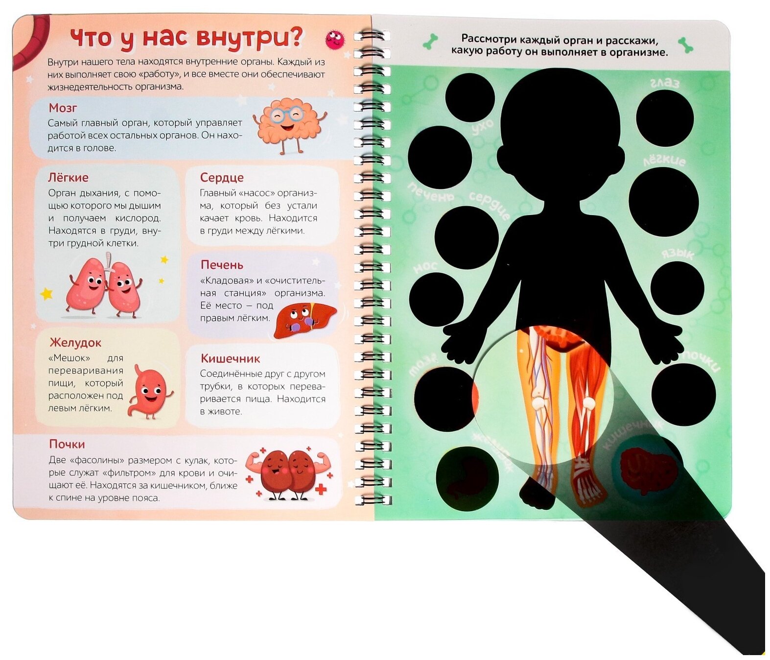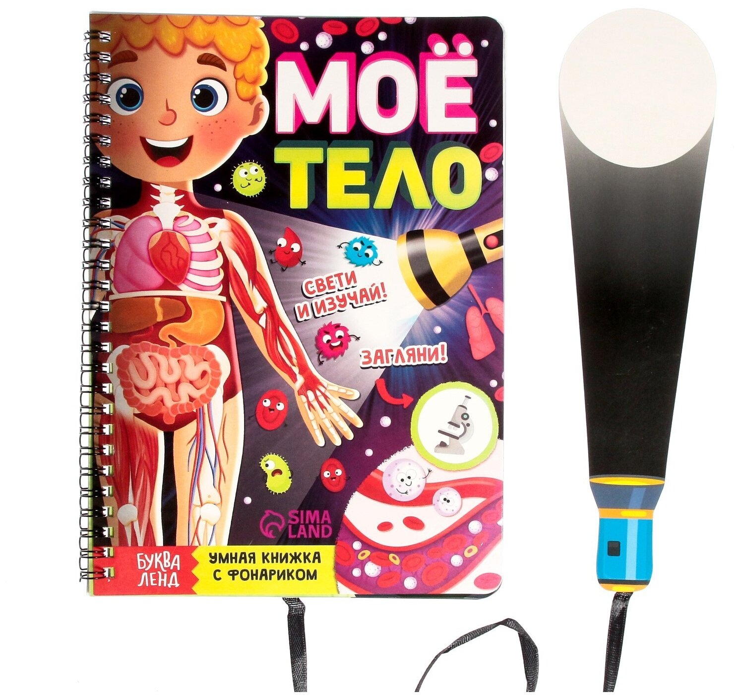 Умная книжка с фонариком «Моё тело». Свети и изучай, 30 стр.С умной книжкой «Моё тело» ребёнок узнает, как устроен человеческий организм и как работают все наши органы и системы. Выполняйте задания, ищите подсказки с помощью фонарика и узнавайте много нового вместе с малышом.Как разглядеть подсказки на страницах книжкиВозьмите фонарик и вложите его под страничку с чёрными элементами.Вы получите яркое изображение на пластиковой странице, где размещаете белую часть фонарика (луч).Остальные части страницы (не под фонариком) остаются в тени.Издание рекомендовано для детей старше 4 лет.-Вес: 170 г.-Количество в упаковке: 1-Кол-во страниц: 30-Тип индивидуальной упаковки: Пакет-Длина упаковки: 17.5-Высота упаковки: 24-Ширина упаковки: 1-Объем упаковки: 0.420-Объем продукта: 0.2759-Объем бокса: 24-Ширина: 17-Высота: 0.4-Габариты товара: 24 см × 17 см × 0,4 см-Материал: PVC, бумага, картон-Набор: Нет-Возраст: От 4 лет, Для детей-Количество страниц: 30-Символ года: Нет-Тема обучения: Окружающий мир, Развитие логики/мышления-Тип: С фонариком-Тип обложки: Мягкий переплёт-Вид: Игра-книга-Автор: Соколова Юлия Сергеевна