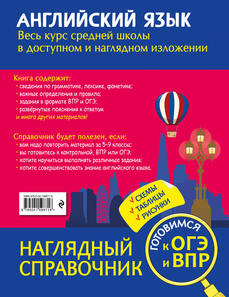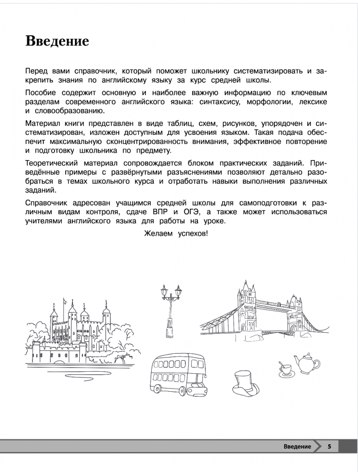 Благодаря справочнику школьники смогут эффективно подготовиться к ВПР и ОГЭ, учителя — организовать учебный процесс, а родители — освежить в памяти школьный курс по английскому языку.