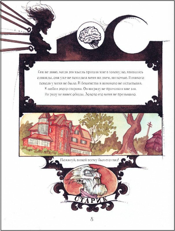 В книжке 4 жуткие и атмосферные сказки Эдгара Аллана По с шикарными иллюстрациями, читаются на ура. Это было мое первое знакомство с автором, оно однозначно произвело на меня впечатление и я явно вернусь к его творчеству. Картинки в совокупности с текстом позволяют лучше почувствовать атмосферу и окунуться в нее полностью. Сюжет всех сказок мне понравился, в каждом есть о чем подумать. В общем, рекомендую к прочтению!