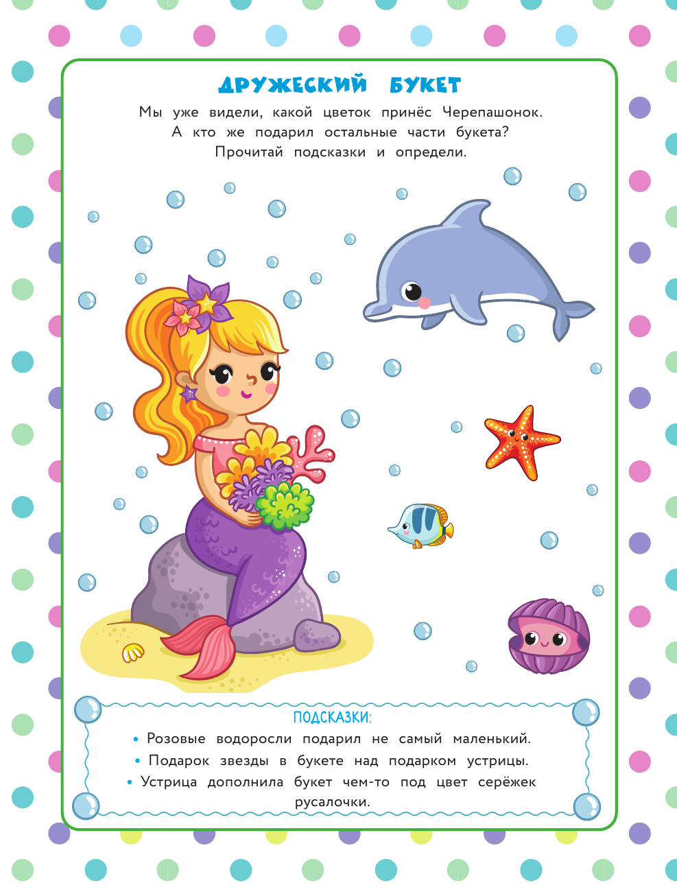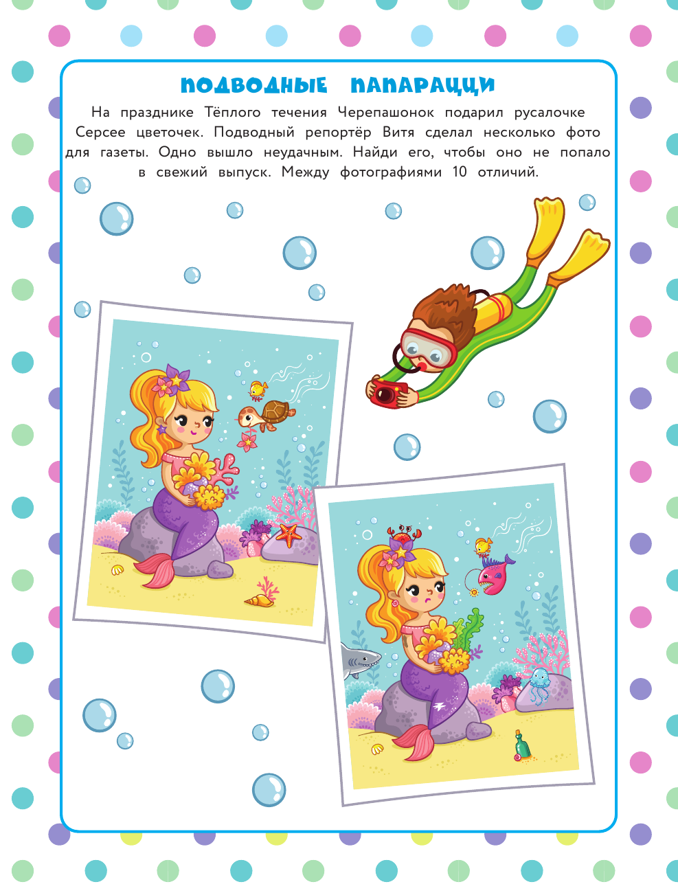 Окунись в океан чудес! Жизнь русалочек полна забавных приключений — присоединяйся! Без тебя им не справиться — помогай подводным жителям проходить лабиринты, искать отличия, находить лишнее, разгадывать судоку, искать потерявшиеся слова, подбирать недостающие детали пазлов и многое-многое другое. В книге собраны самые интересные и полезные головоломки — время в подводном царстве пролетит весело, а ты прокачаешь свой мозг и полезные навыки — станешь супервнимательным и сообразительным подводным героем. А ещё ты на славу повеселишься! Не время скучать — скорее открывай сборник головоломок и присоединяйся к подводным приключениям где угодно — книжку очень удобно носить собой.