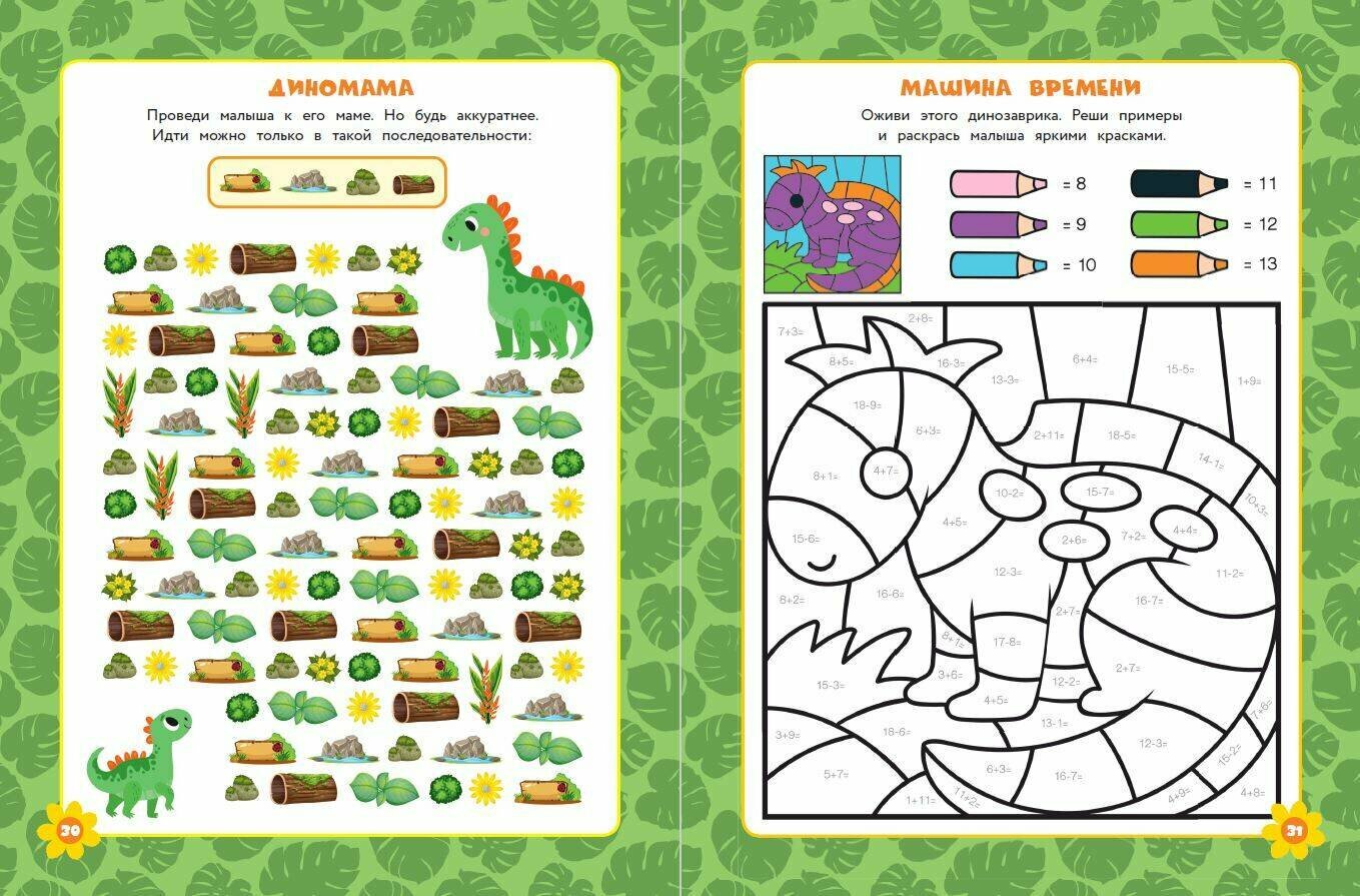 Соверши путешествие в прошлое! Жизнь динозавриков полна неожиданных событий и забавных приключений — присоединяйся! Без тебя им не справиться — помогай доисторическим существам проходить лабиринты, искать отличия, находить лишнее, разгадывать судоку, искать потерявшиеся слова, подбирать недостающие детали пазлов и многое-многое другое. В книге собраны самые интересные и полезные головоломки — время пролетит весело, а ты прокачаешь свой мозг и полезные навыки — станешь супервнимательным и сообразительным героем. А ещё ты на славу повеселишься! Не время скучать — скорее открывай сборник головоломок и присоединяйся к масштабным приключениям где угодно — книжку очень удобно носить собой.