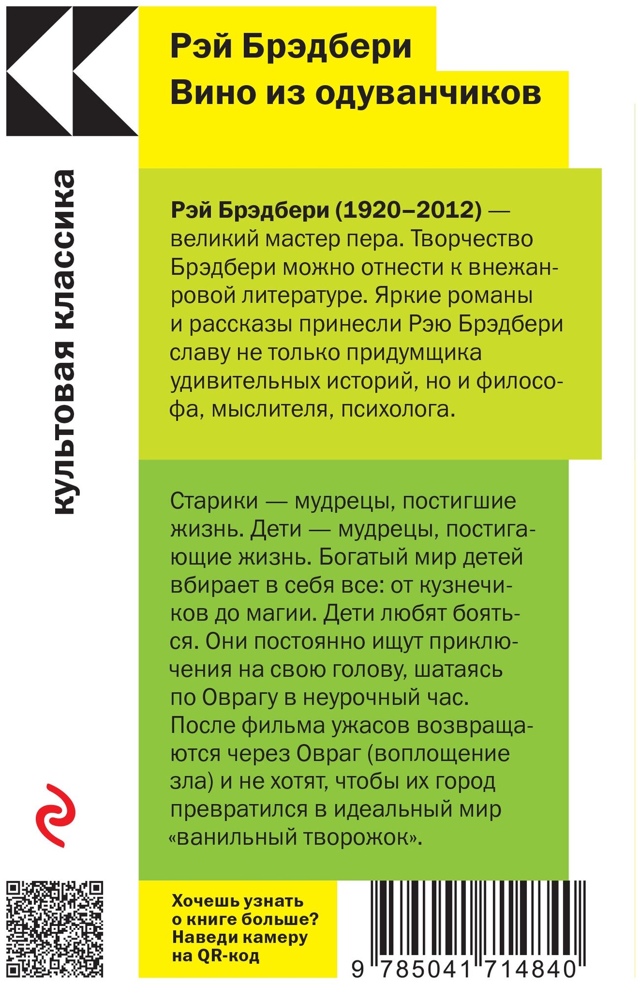 На сегодняшний день товар «Книга: Вино из одуванчиков (Брэдбери Рэй); ООО "Издательство "Эксмо", 2022» можно купить с кешбеком в 4 магазинах: Читай-город, book24, Яндекс.Маркет, Буквоед