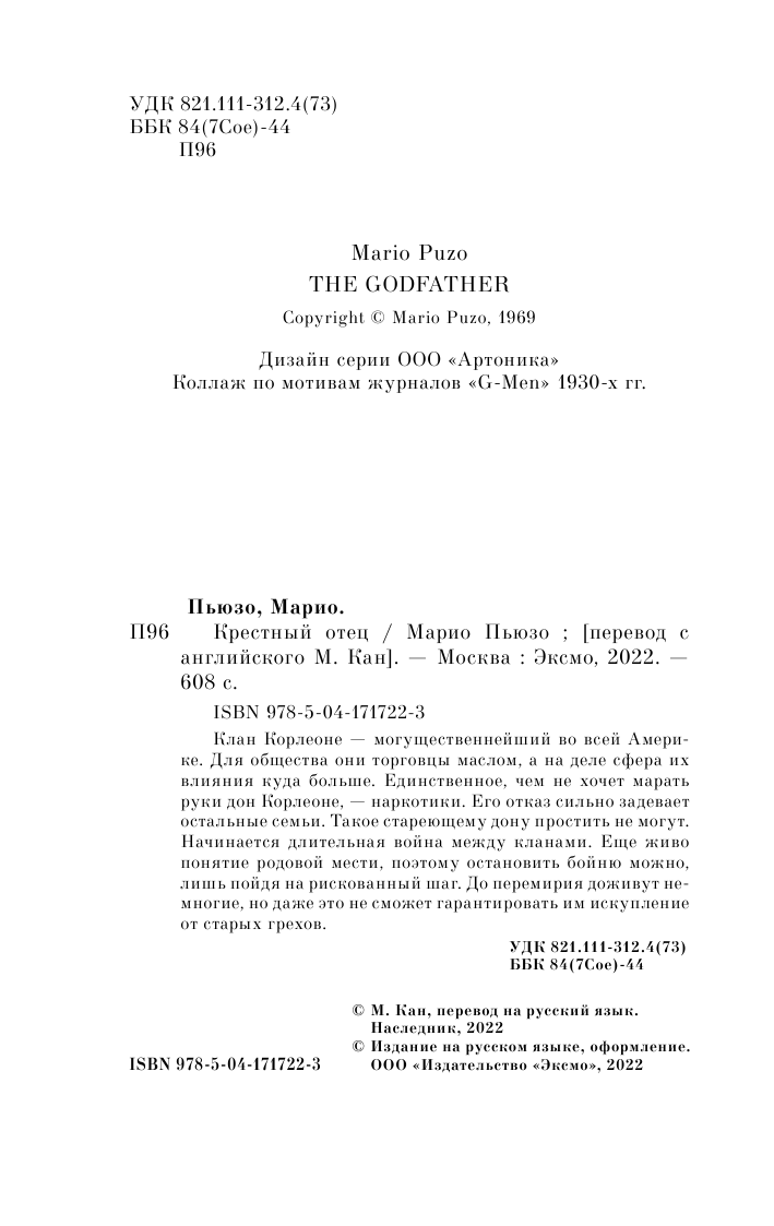 Книга: Крестный отец (Пьюзо Марио); ООО "Издательство "Эксмо", 2022