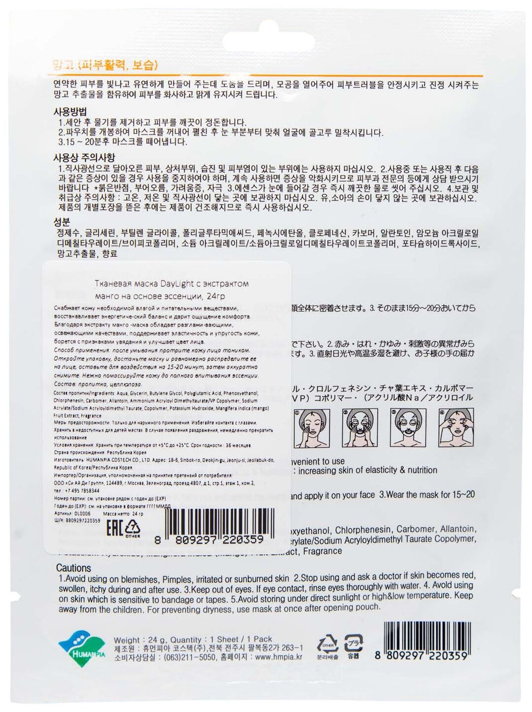 DAY LIGHT Тканевая маска с экстрактом манго на основе эссенции 24 г (DAY LIGHT ) (ЭХ99989432716)