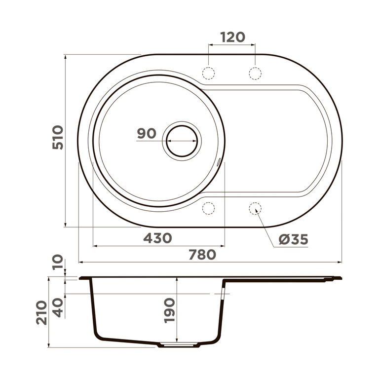 | Готовых отверстий под смеситель | Нет |