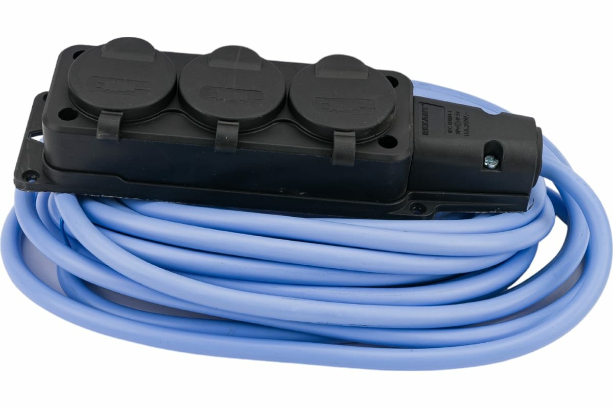 Силовые удлинители торговой марки «КУБ» (Power Cube) производятся в России компанией ООО «Электрическая мануфактура». Компания ООО «Электрическая мануфактура» более 20 лет успешно развивается в сегменте бытовых удлинителей, сетевых фильтров и шнуров питания. При производстве удлинителей в бухте мы используем шнуры различных длин и сечений. Шнуры полностью соответствуют требованиям ГОСТ 28244-96, их токоведущие жилы изготовлены из чистой меди класса «А», что отличает нас от множества конкурентов использующих омеднённую проволоку. Шнуры с токоведущими жилами из омеднённой проволоки могут переломиться из-за частых перегибов кабеля, что приведет к выходу из строя изделия, а также к короткому замыканию! Морозостойкий силовой удлинитель в бухте с одной розеткой без заземления предназначен для удлинения электросоединения между прибором или инструментом и стационарной розеткой до 10 метров. Применяется при работе на строительных площадках, дачных участках или в быту для подключения различных электроинструментов и садовой техники таких как: снегоуборщики, тепловые пушки, электродрели, цепные пилы, газонокосилки, триммеры и т. д. Суммарная номинальная мощность нагрузки такого удлинителя: 3500Вт, номинальный ток нагрузки: 16А. Сечение провода: 3*2.5 мм. Кабель удлинителя изготовлен из термопластичного эластомера, благодаря чему его можно использовать при экстремальных температурах от -50 до +50, при этом провод сохраняет свою гибкость и эластичность, не подвержен изломам и не перекручивается, что обеспечивает удлинителю максимальную надежность и долговечность даже при эксплуатации в тяжёлых условиях. Вилка удлинителя имеет эргономичную форму, на другом же конце кабеля используется колодка на 3 розетки с заземлением и защитными крышками. Степень защиты розеток IP54 предусматривает использование силового удлинителя как в летнее, так и в зимнее время внутри помещений и на улице. При долгом хранении удлинителя рекомендуется плотно закрывать специальные защитные крышки розеток, во избежание попадания внутрь воды. Каждый силовой удлинитель проходит тщательную проверку на каждом из этапов производства. Срок гарантийного обслуживания: 1 год.