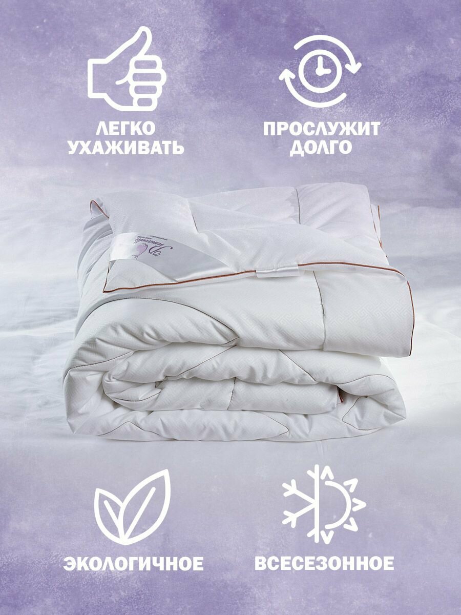Легкое и воздушное одеяло - воплощение мечты человечества об удобном и комфортном сне. Наполнитель - искусственный лебяжий пух, который представляет собой сверхтонкое волокно нового поколения. Благодаря ему одеяло очень мягкое и воздушное, не накапливает пыль и запахи. Главное преимущество наполнителя - гипоаллергенность, поэтому одеяло отлично подходит как взрослым, так и детям. Чехол одеяла создан из ткани Биософт с тиснением и peach-эффектом. Peach-эффект - это дополнительная обработка, после котор