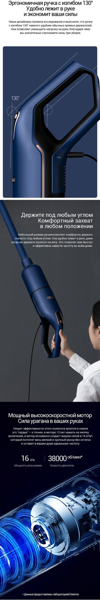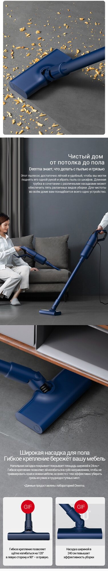 Вертикальный пылесос Deerma DX1000W сухая уборка синий