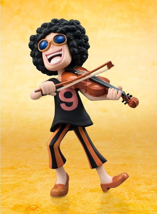 Между прочим, это Брук до смерти. Именно тогда, при жизни, он был высоким и загорелым мужчиной вполне приятной наружности. После смерти он выглядит как скелет. Почему он вообще как–то существует после кончины? Дело в том, что он съел Дьявольский плод Ёми Ёми, благодаря которому и воскрес.