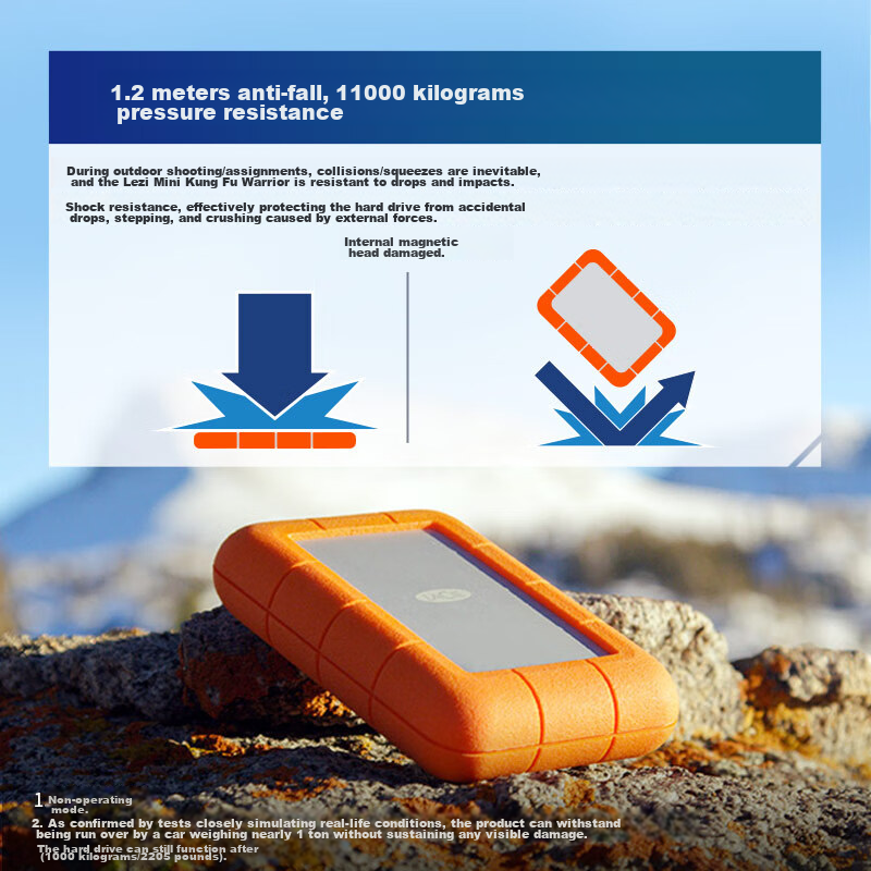 Мобильный жесткий диск LaCie Rugged Mini Mobile Drive, выполненный в форм-факторе 2,5 дюйма, привлекает внимание своим необычным видом. А резиновые манжеты, обрамляющие LaCie Rugged Mini Mobile в виде рамки, выполняют не только декоративную, но и защитную функцию. Современному устройству не страшны не только царапины и удары, но и проливной дождь, а также сильнейшее давление. Все пользовательские данные при желании можно защитить паролем. Внешний жесткий диск LaCie Rugged Mini Mobile Drive комфортно брать с собой всюду.
