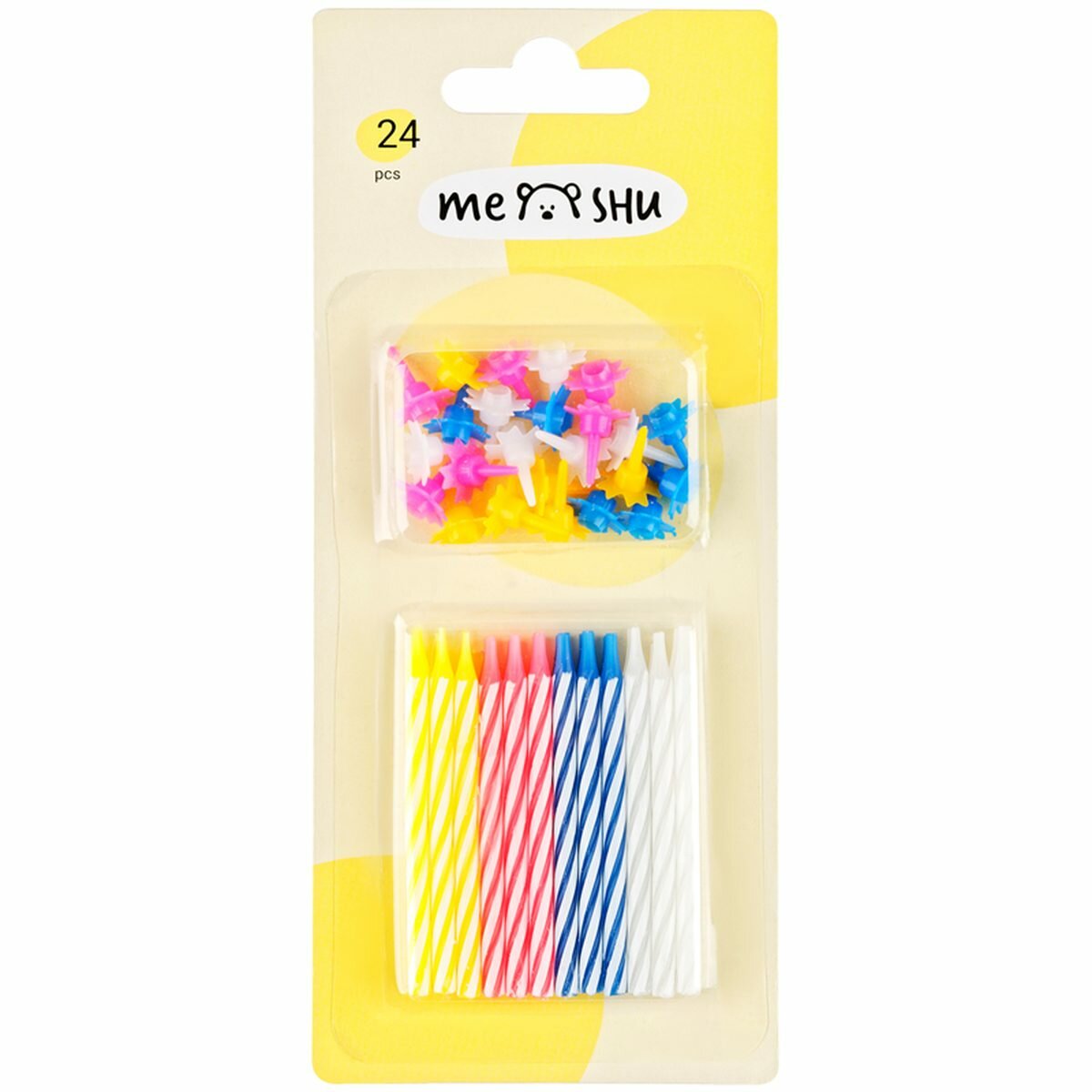Свечи для торта с держателями MESHU "Мини" 2-х цветные 55 см 24 шт блистер (MS_32371)