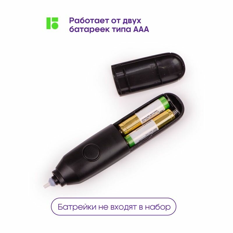 Ластик работает от 2 батареек ААА ( батарейки не входят в комплект).