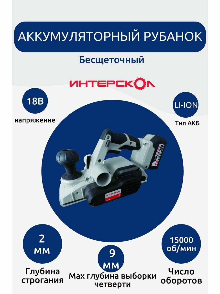 - Модель: Рубанок Интерскол РА-82/18В 694.1.0.70 бесщеточный аккумуляторный, Li-ion АПИ