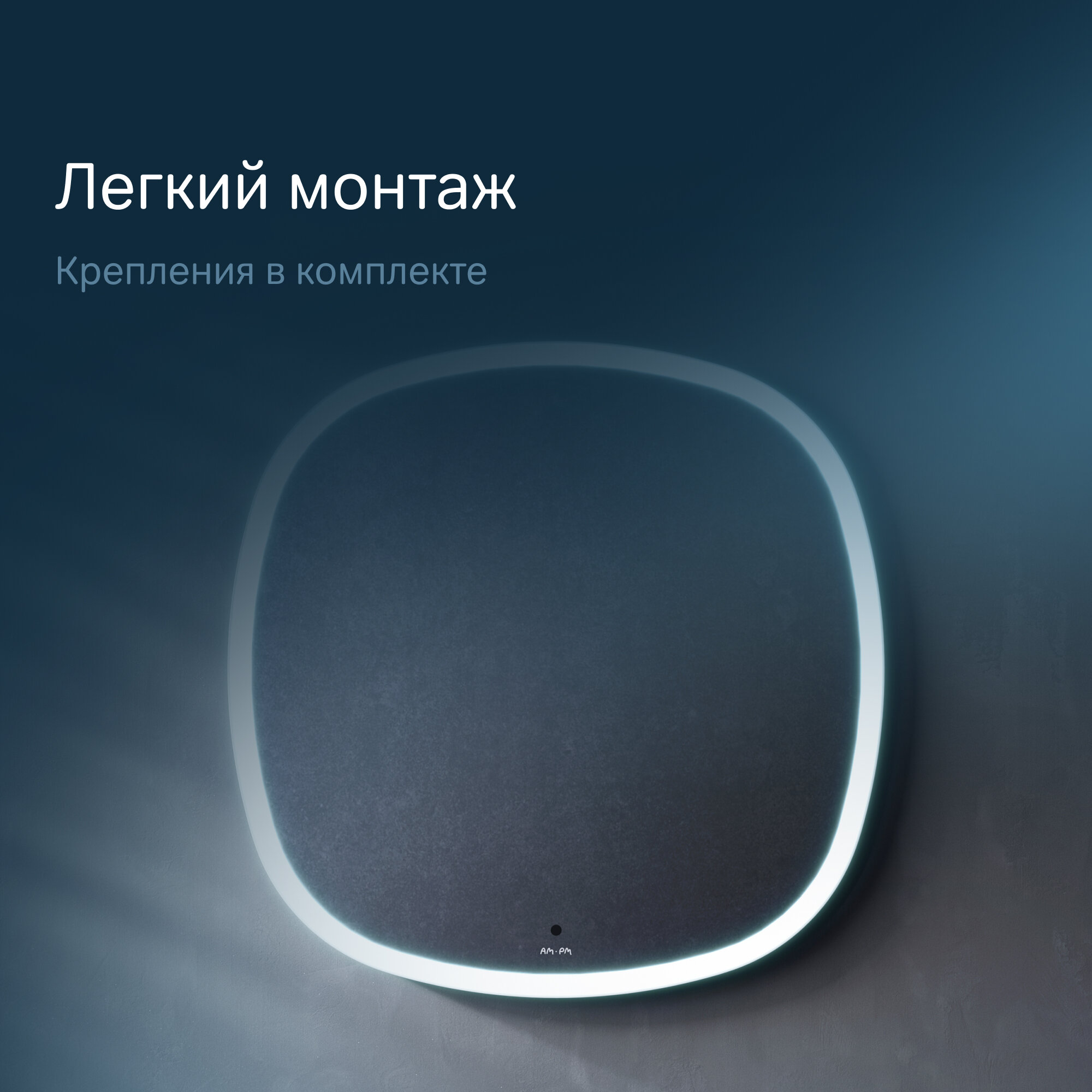 Зеркало для ванной Am.Pm Func M8FMOX0551WGS белое, сложной формы с контурной LED-подсветкой, ИК- сенсором, квадрат, 55 см. Оснащение : подсветка, Выключатель Touchless. Изделие имеет высокую степень защиты от попадания капель воды, брызг. Край зеркального полотна обработан еврокромкой, что обеспечивает надежную защиту от случайных порезов при контакте с изделием. В качестве элемента LED-подсветки используется светодиодная лента, которая создает мягкое и равномерное свечение по периметру всего зеркала. Управление подсветкой осуществляется при помощи бесконтактного сенсора. Сенсор нового поколения позволяет управлять включением/выключением и яркостью LED-подсветки без касания зеркального полотна. Зеркало дольше остается чистым. Зеркало поставляется в комплекте с настенным крепежом и инструкцией.