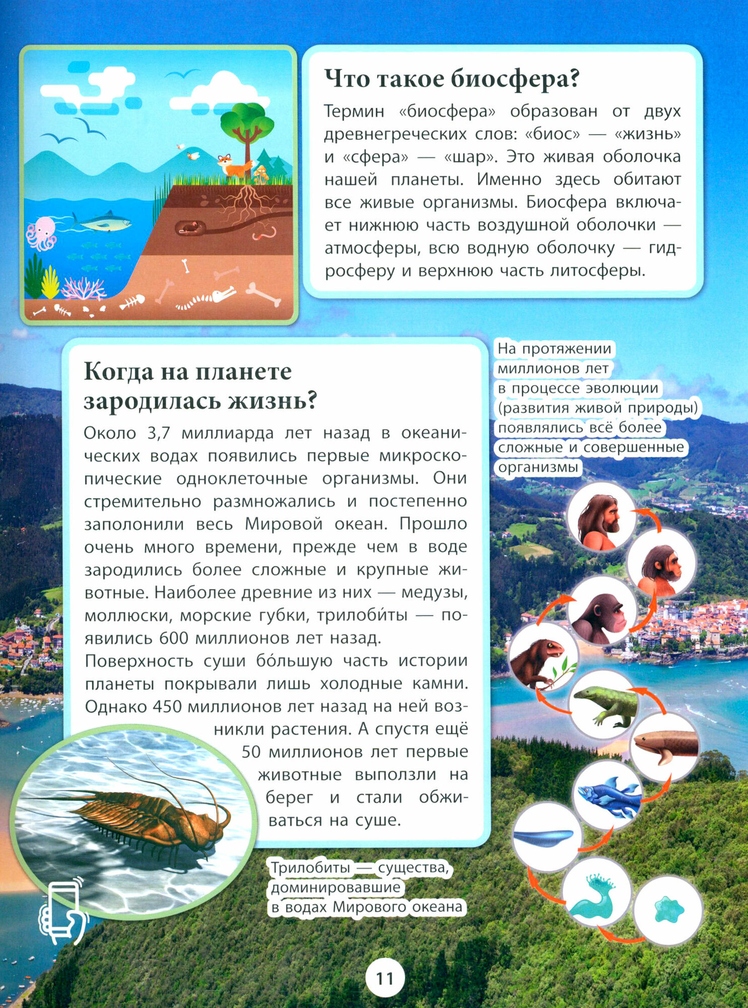 Красочно иллюстрированное издание поможет больше узнать о прошлом и настоящем планеты. Читатель узнает, как образовалась Земля и как она изменялась на протяжении миллиардов лет, как здесь зародилась и развивалась жизнь. Технология дополненной реальности позволяет совершить виртуальное путешествие по всем континентам, посетить величественные горы, увидеть огнедышащие вулканы, загадочные джунгли, таинственные пещеры и гигантские ледники.