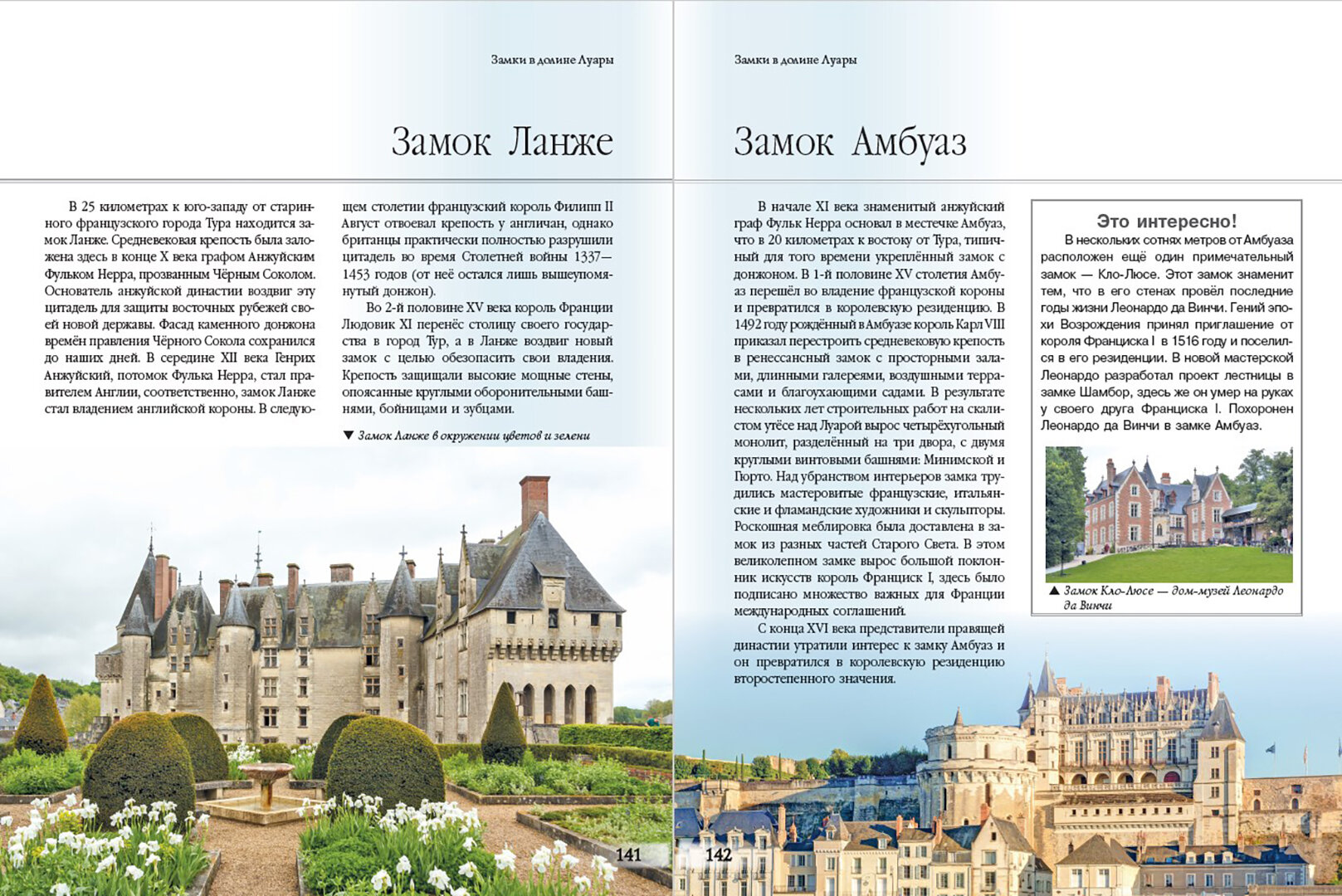 Помимо описания внешнего вида и интерьеров монументальных достопримечательностей и архитектурных стилей в книгу включены краткие исторические, географические и статистические сведения о странах, в которых они находятся, а также небольшие рассказы о правителях и ключевых фигурах, связанных с определенными замками и дворцами.