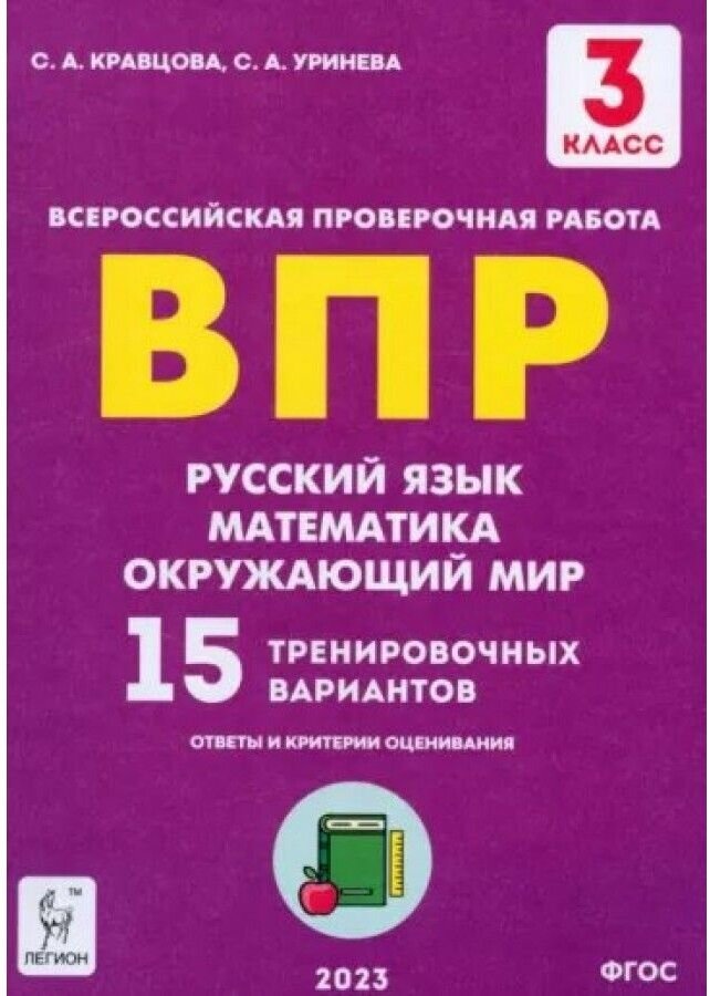 Русский язык математика окружающий мир. 3 класс. Подготовка к ВПР. 15 тренировочных вариантов (Кравцова Светлана Анатольевна, Уринева Светлана Александровна); Легион, 2023