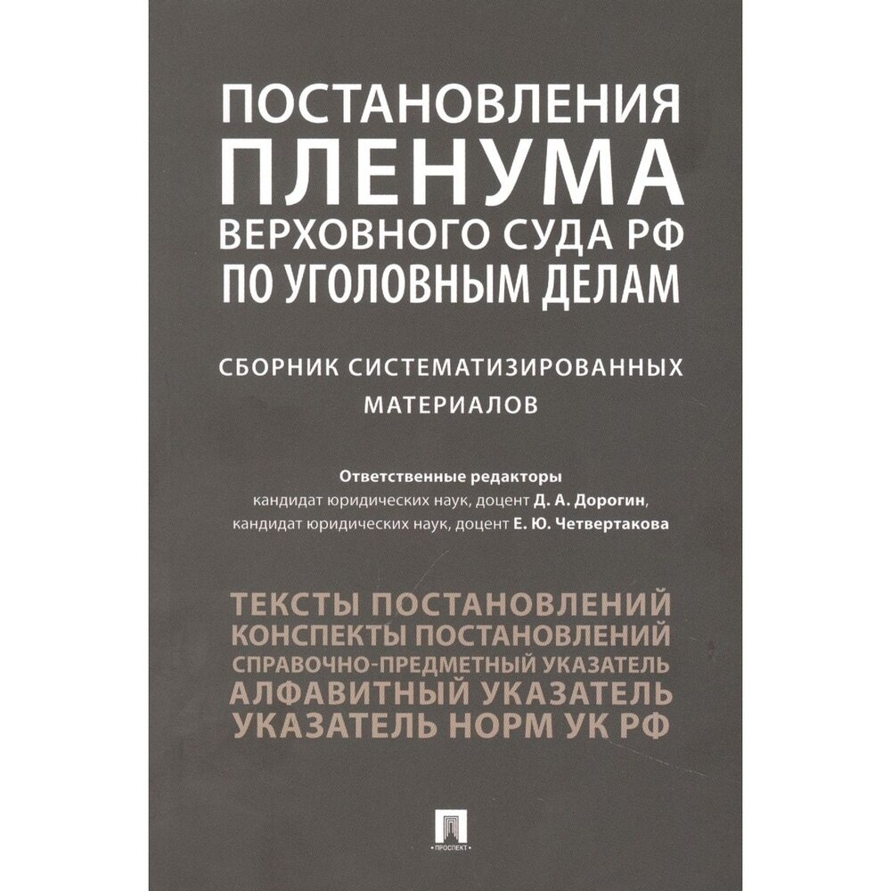 Постановления Пленума Верховного Суда РФ по уголовным делам сборник систематизированных материалов (Дорогин Дмитрий Александрович; Антонов Юрий Иванович; Четвертакова Елизавета Юрьевна); Проспект, 2024