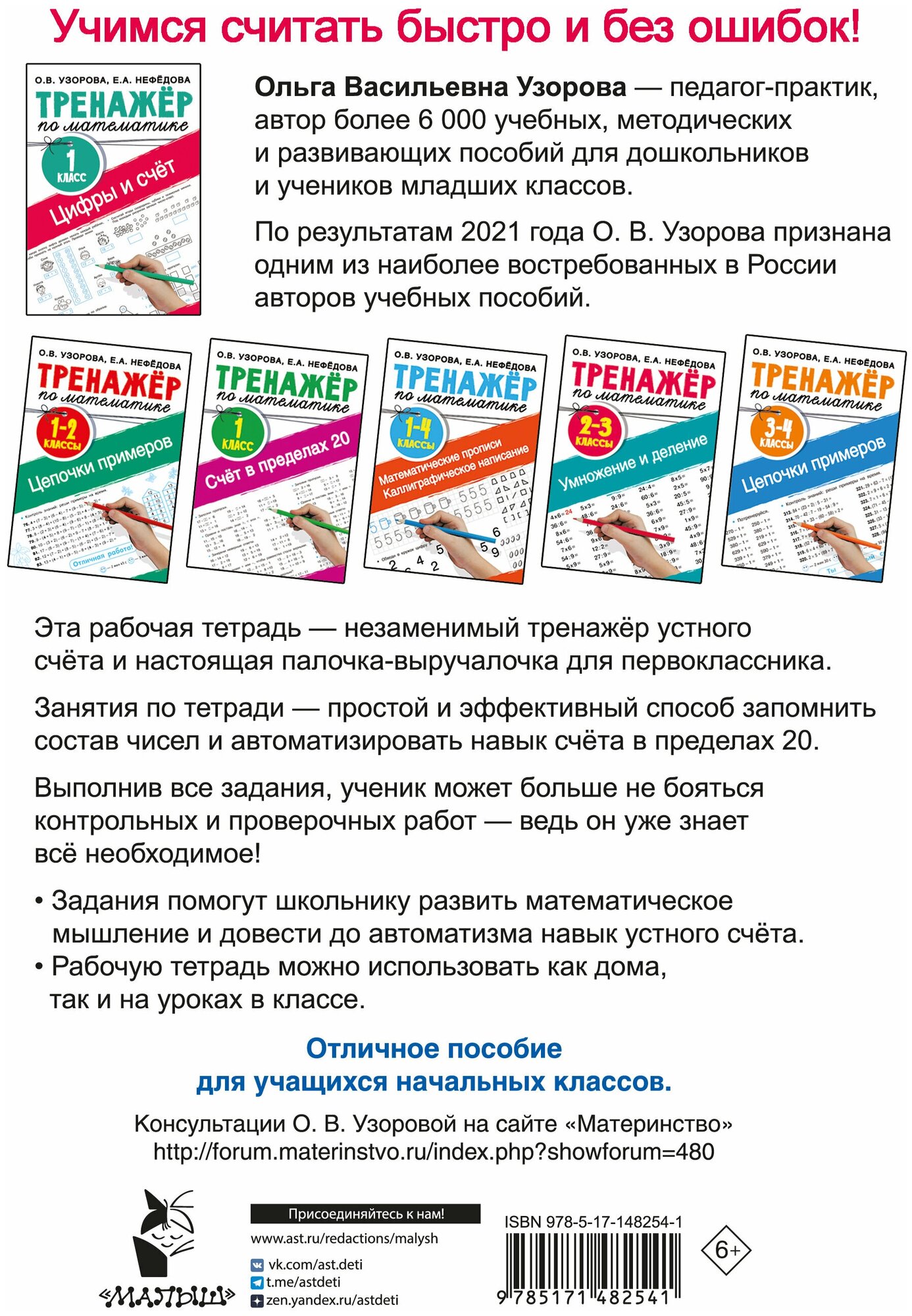 Цифры и счет Тренажер по математике 1 класс (О. В. Узорова); Издательство АСТ, 2022