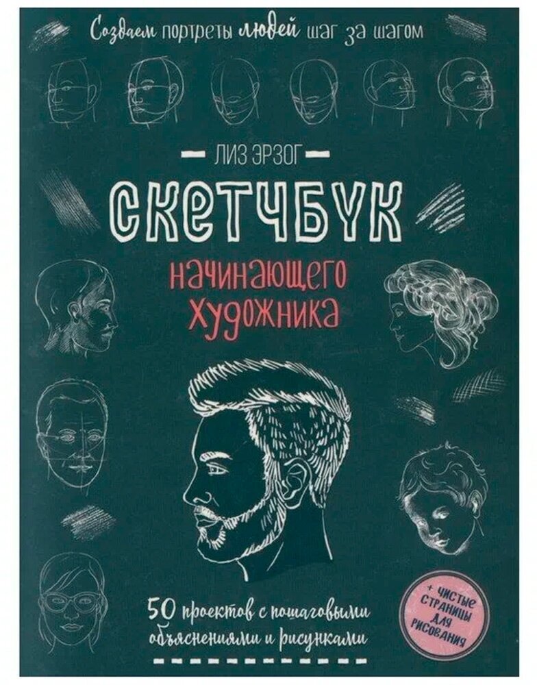 Серия «Скетчбук начинающего художника» от известного иллюстратора Лиз Эрзог воплотила в себе все достоинства современных учебников по рисованию: простоту, наглядность, возможность начать практиковаться прямо на страницах пособия, а также, что немаловажно, компактность и бюджетность. В каждом из этих скетчбуков вас ждет по 50 мастер-классов, выполненных и показанных пошагово и очень подробно. В этом скетчбуке вас ждут мастер-классы по рисованию портретов – мужчин и женщин, детей и пожилых людей. Начиная с азов рисования человеческого лица, автор постепенно подводит читателя к более сложным вещам: изображению возрастных изменений и эмоциональных состояний. Каждый мини-урок сопровождается не только изображением нового объекта, но и новой техникой, будь то рисование карандашом, линером, маркером, и т. д. В мастер-классах показаны разные техники завершения рисунка, что позволит придать вашему изображению объем и характер. Просто следуйте указаниям!