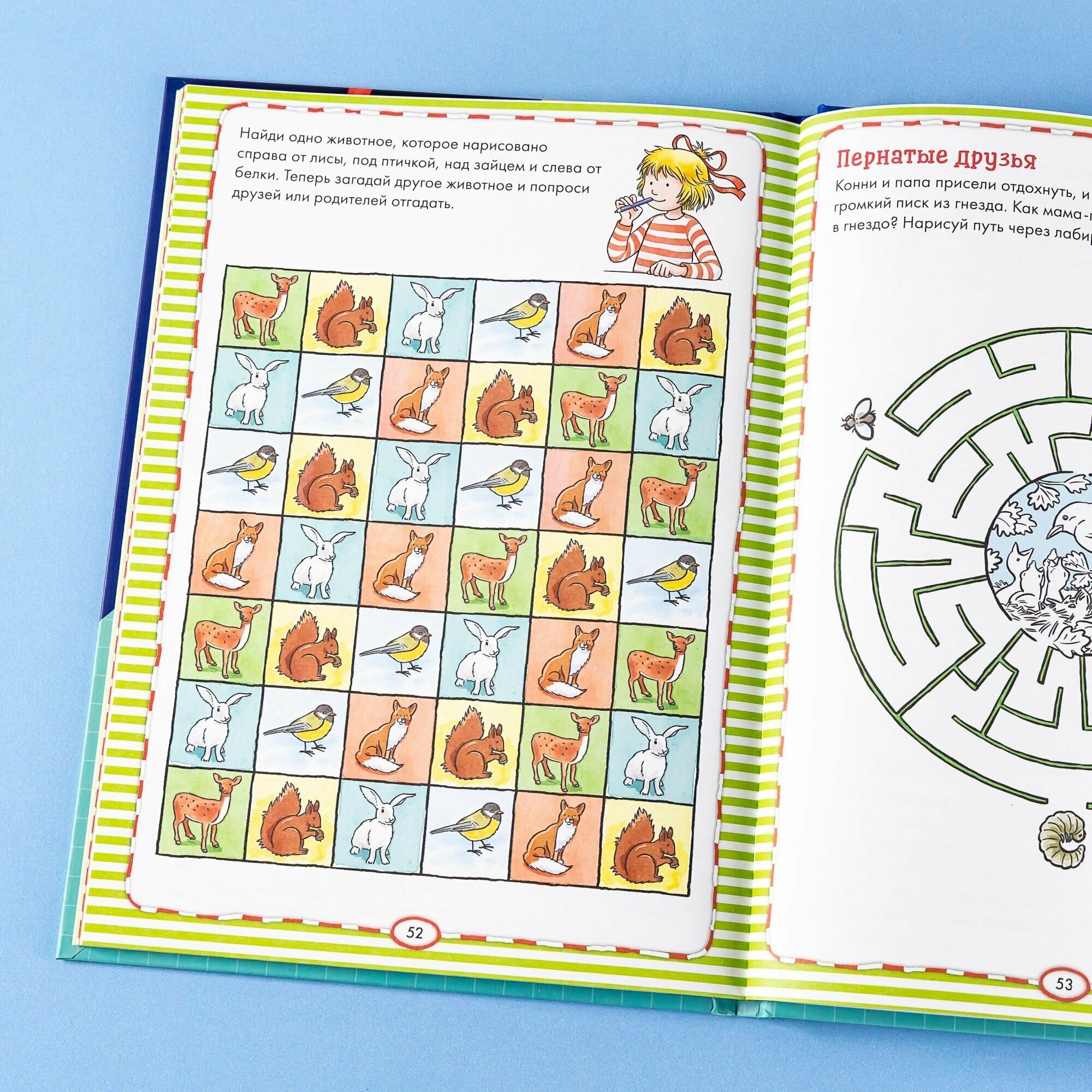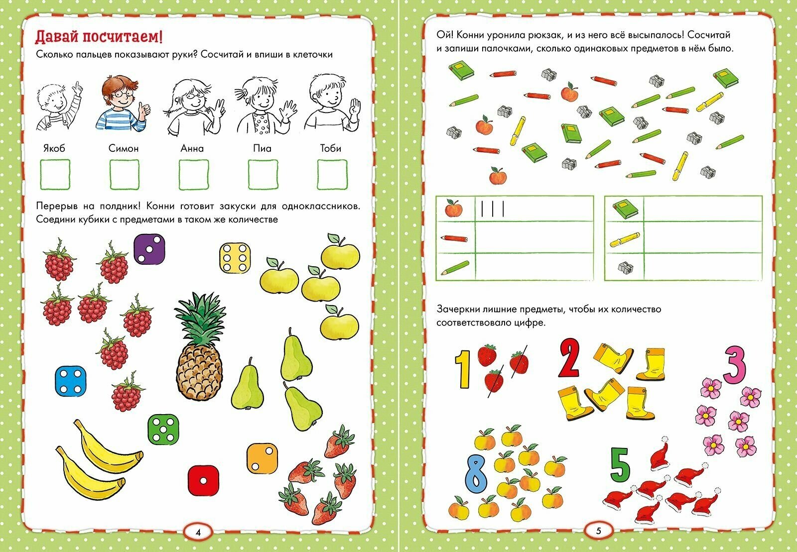 Более 50 заданий, которые помогут ребенку потренироваться перед началом учебы в первом классе. Устный счёт, сложение и вычитание в пределах двадцати, умножение на 2, чётные и нечётные цифры, алфавит, задания на развитие навыков письма и чтения, азы английского языка, времена года, природа и животные, названия всех дней недели и месяцев, время по часам со стрелками. А устать от выполнения заданий не дадут интересные головоломки, лабиринты, раскраски и другие полезные задания. Запаситесь цветными карандашами и учитесь, играя вместе с любимой Конни!
