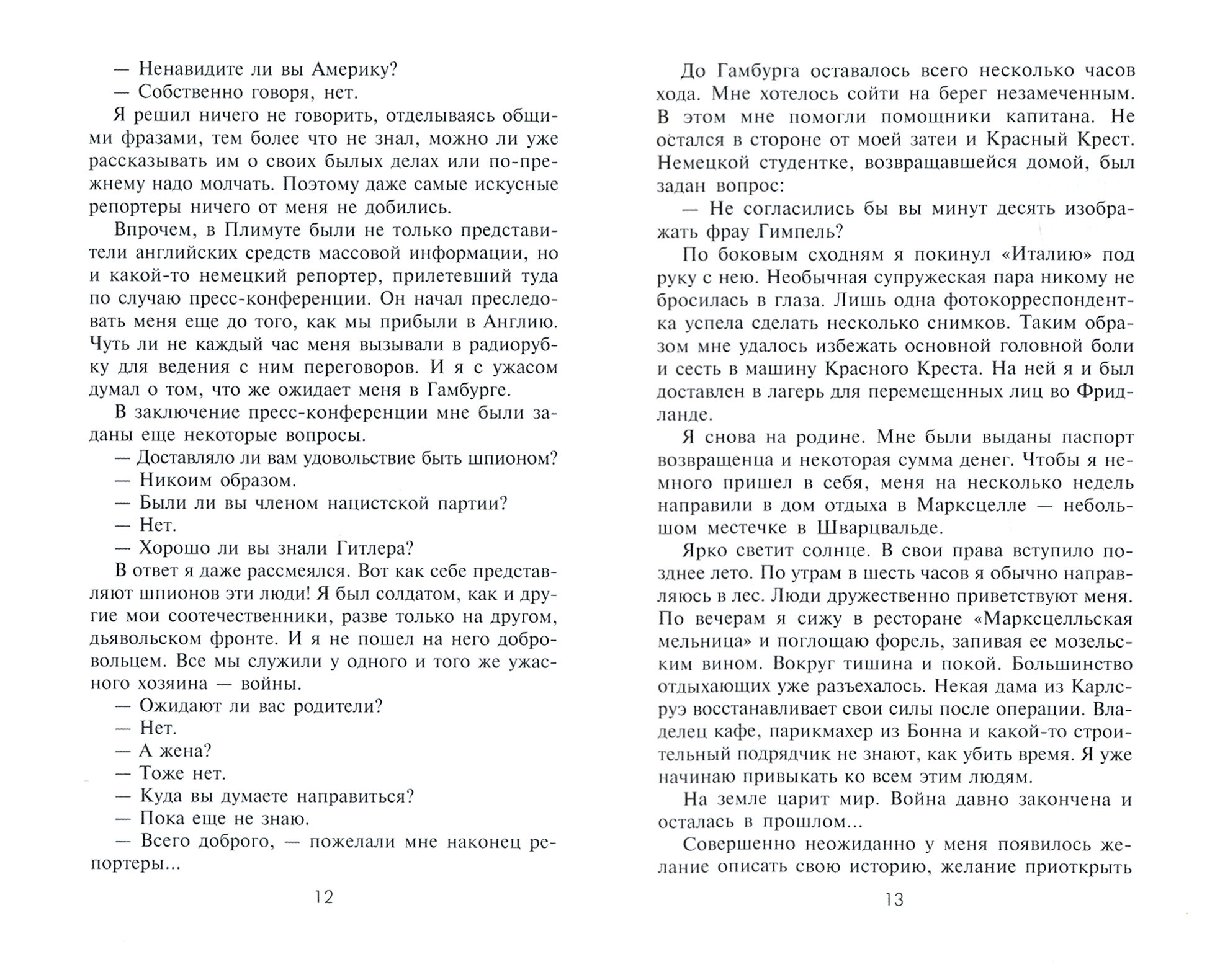Мемуары шпиона, больше похожие на исповедь человека, верой и правдой служившего гитлеровскому режиму. Самое важное в его жизни задание оказалось для Гимпеля роковым: он должен был сорвать производство атомной бомбы в США, но из-за предательства напарника был схвачен и приговорен к повешению. По решению президента Трумэна смертная казнь была заменена на пожизненное заключение. После амнистии Эрих Гимпель вернулся в Германию и написал эту книгу.