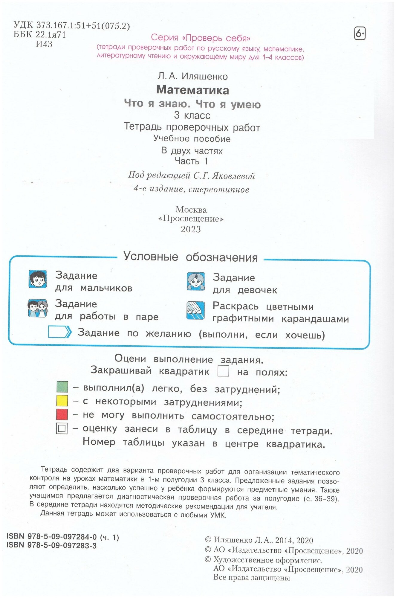 Математика 3 кл Что я знаю Что я умею Тетрадь проверочных работ Учебное пособие В двух частях Часть 1 (Иляшенко Людмила Анатольевна); Просвещение, 2023