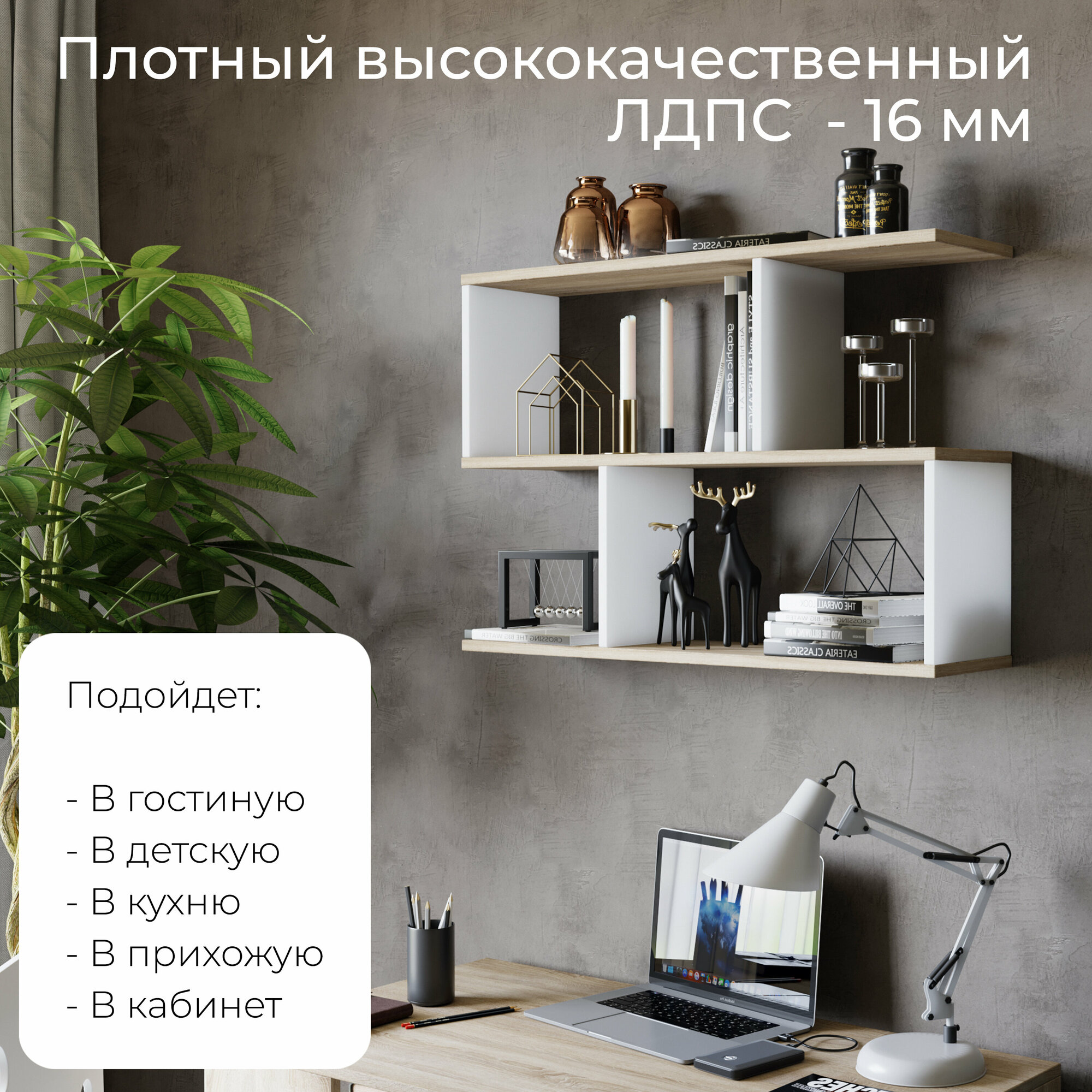 Для организации пространства в помещениях, а также для украшения интерьера нет ничего лучше полок. Полка настенная предназначена не только для удобной организации рабочего и личного пространства, но и прекрасно впишется в интерьер любой квартиры или офиса. Секрет такой универсальности в лаконичности форм и наиболее распространённом цветовом оформлении.характеристика мебели:• Декор: «Дуб сонома/Белый ясень»;• Каркас и фасад: ЛДСП;• Обработка торцов: Кромка ПВХ 0,4 мм;• Тип сборки: универсальный;• Габаритные размеры (ШхГхВ): 800х200х550 мм;