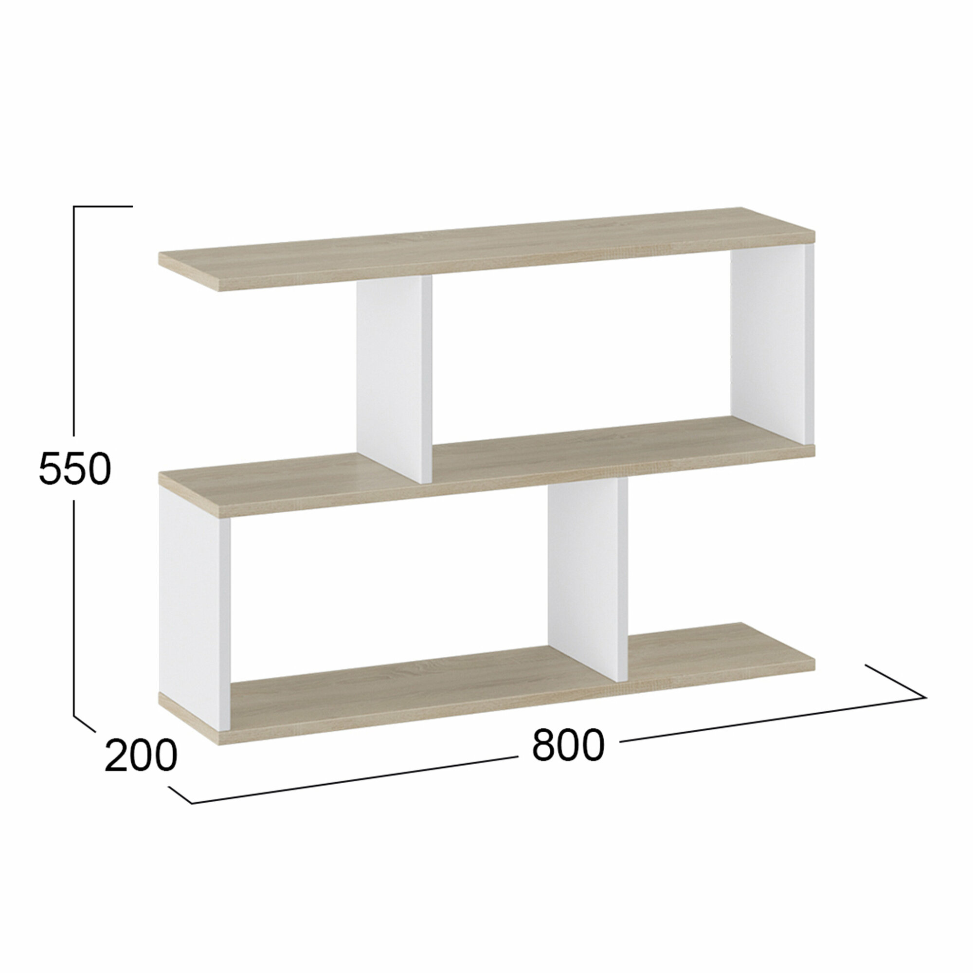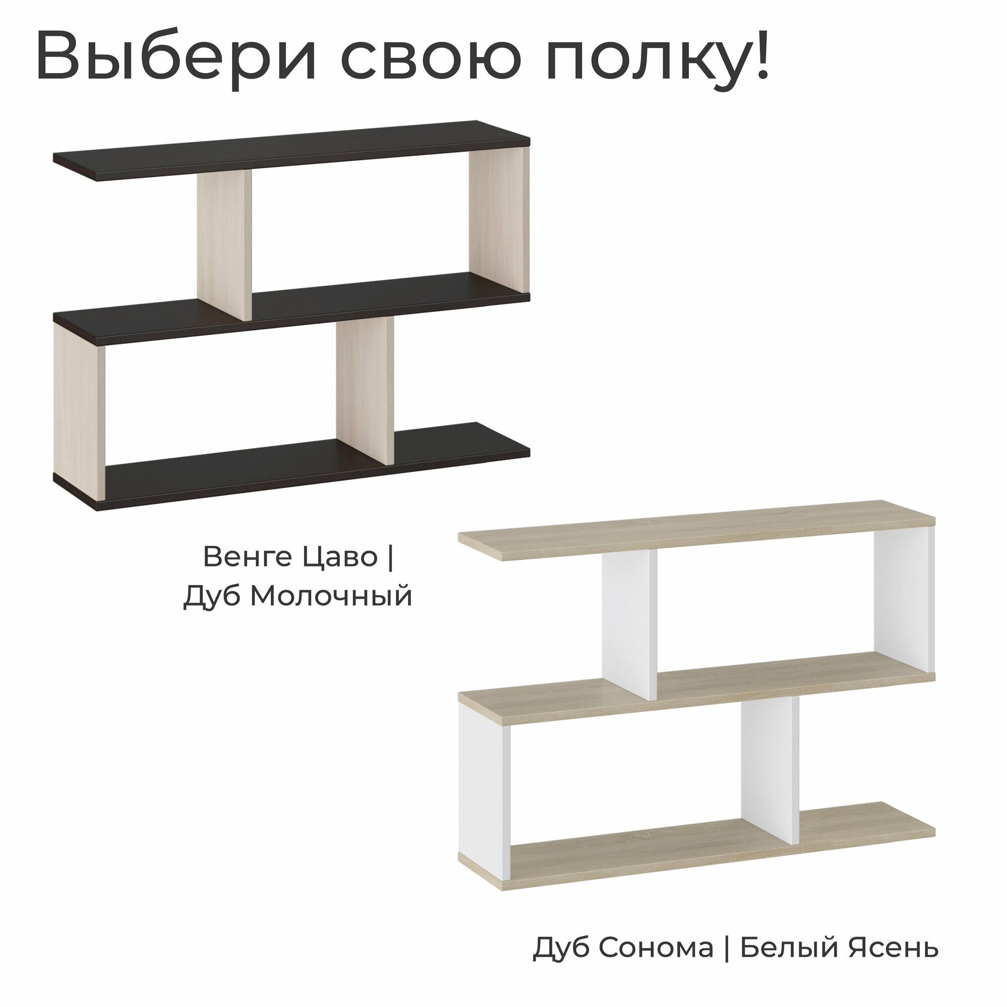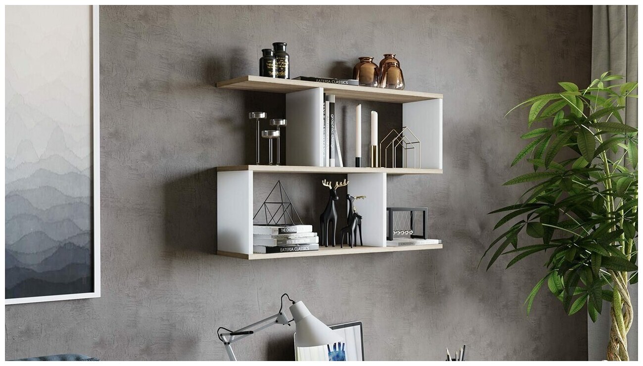 Для организации пространства в помещениях, а также для украшения интерьера нет ничего лучше полок. Полка настенная предназначена не только для удобной организации рабочего и личного пространства, но и прекрасно впишется в интерьер любой квартиры или офиса. Секрет такой универсальности в лаконичности форм и наиболее распространённом цветовом оформлении.характеристика мебели:• Декор: «Венге Цаво/Дуб Молочный»;• Каркас и фасад: ЛДСП;• Обработка торцов: Кромка ПВХ 0,4 мм;• Тип сборки: универсальный;• Габаритные размеры (ШхГхВ): 800х200х550 мм; основные преимущества модели:• Полка имеет удачную конфигурацию и помимо своего функционального назначения послужит интересным декором для стены. Асимметричная конструкция представляет собой сквозные ячейки, сдвинутые относительно друг друга.• Экологичность и долговечность материалов позволят вам наслаждаться удобством и красотой такого решения длительное время. Модели выполнены из лсдп, аккуратны, изящны, при этом отличаются отличным качеством и прочностью. • Модель имеют впечатляющую вместимость, но следует помнить про максимальные нагрузки. Одна секция сможет выдержать до 2-3 кг в зависимости от конкретной модели.