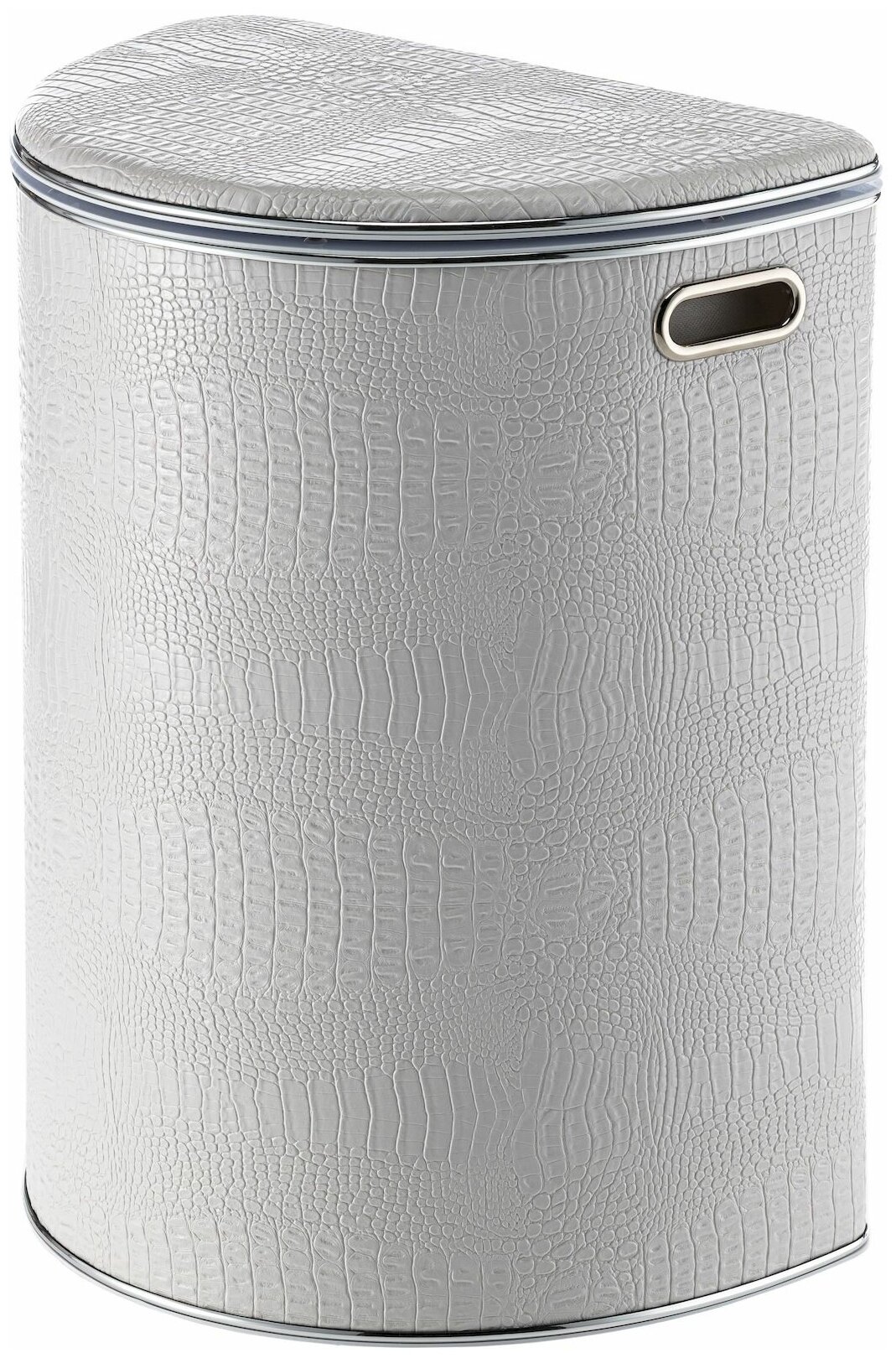 Корзина для белья Geralis KWG-O CROCO белая кант золото полукруглая Hoff