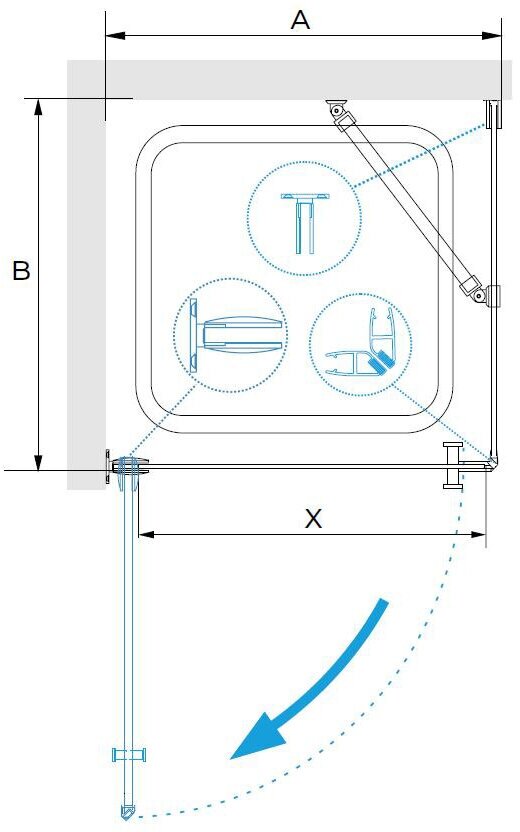 Душевой уголок RGW Hotel 100х100 35063400-11. Размеры с диапазоном регулировок: 970х970 мм. 2 класс герметичности. Магнитный уплотнитель двери. Покрытие стекла анти капля: Easy Clean. Регулируемый профиль. Ресурс эксплуатации: 15 лет. Страна производства: Германия. Гарантия: 1 год. Поддон приобретается отдельно.