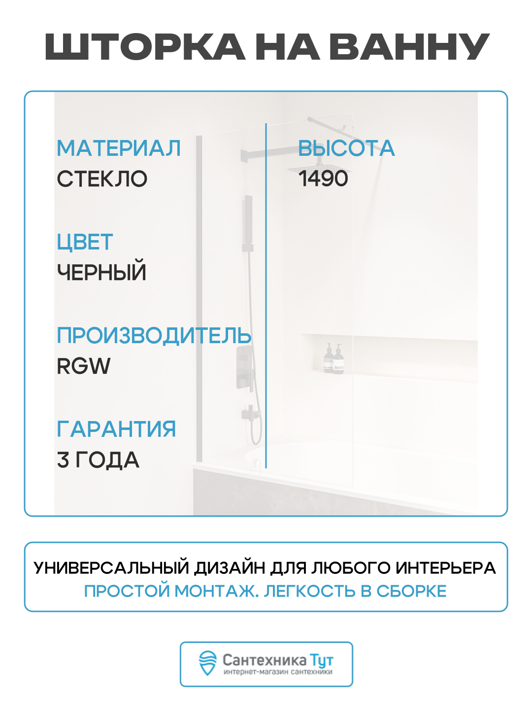 Тип товара: Шторка на ванну