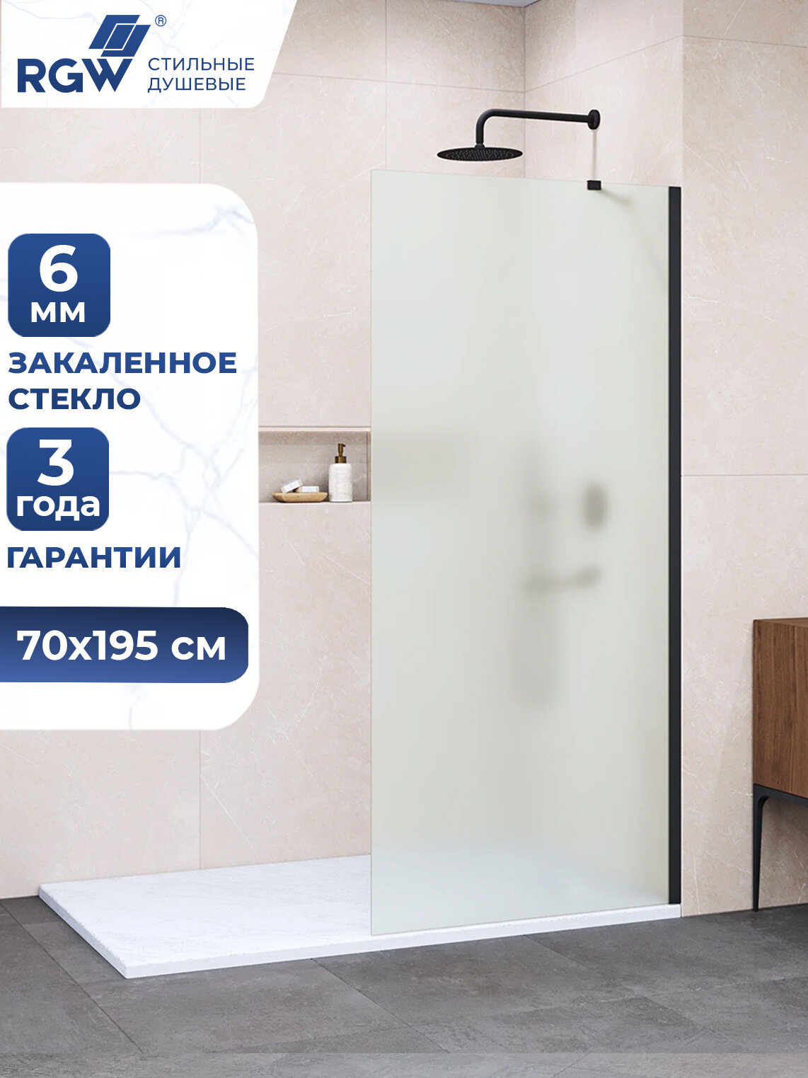 Душевая перегородка RGW Walk In WA-002B 70 35100207-24 профиль Черный стекло матовое-сатинат