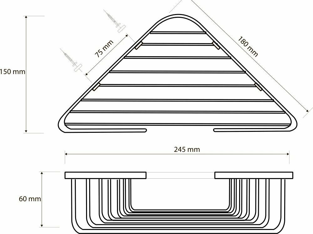 - Размер (ШхВхД): 245х60х150 мм.