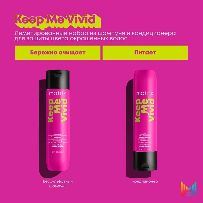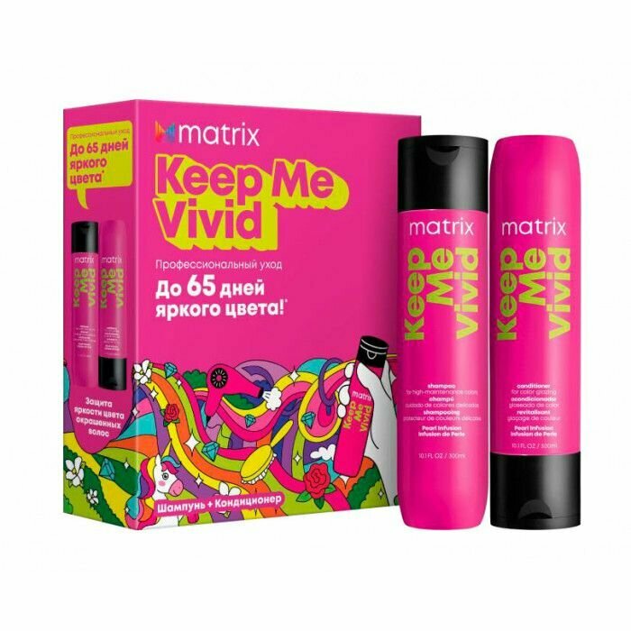*При использовании системы Keep Me Vivid из шампуня, кондиционера и спрея-ламинатора. Профессиональный бренд Matrix создан парикмахером. Основная идея профессиональных уходов Matrix - уход за волосами не должен быть сложным. Наши профессиональные гаммы созданы, чтобы в комплексе решать проблемы любых типов и видов волос. Легкие в применении, эффективные в действии.