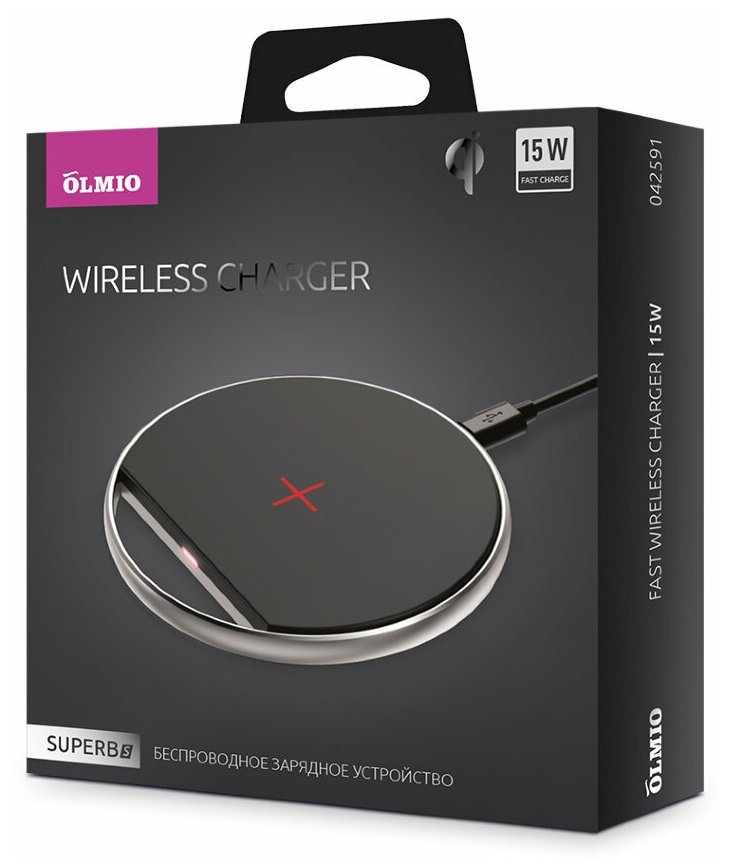Модель: Устройство зарядное Olmio Supebs 15W Super Fast Charge беспроводное черная