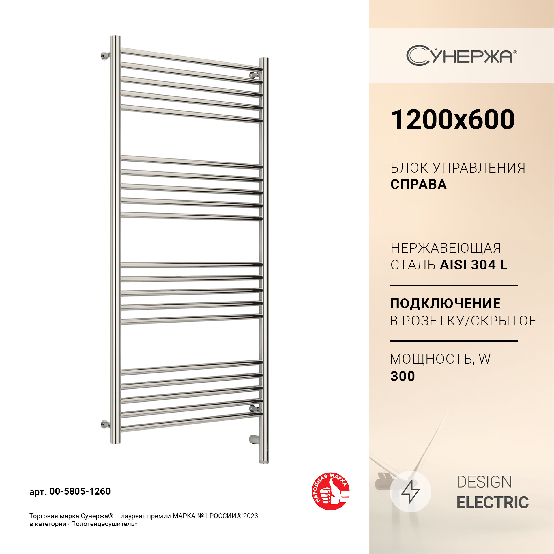 Полотенцесушитель электрический Сунержа прямая Богема 3.0 120х60 R