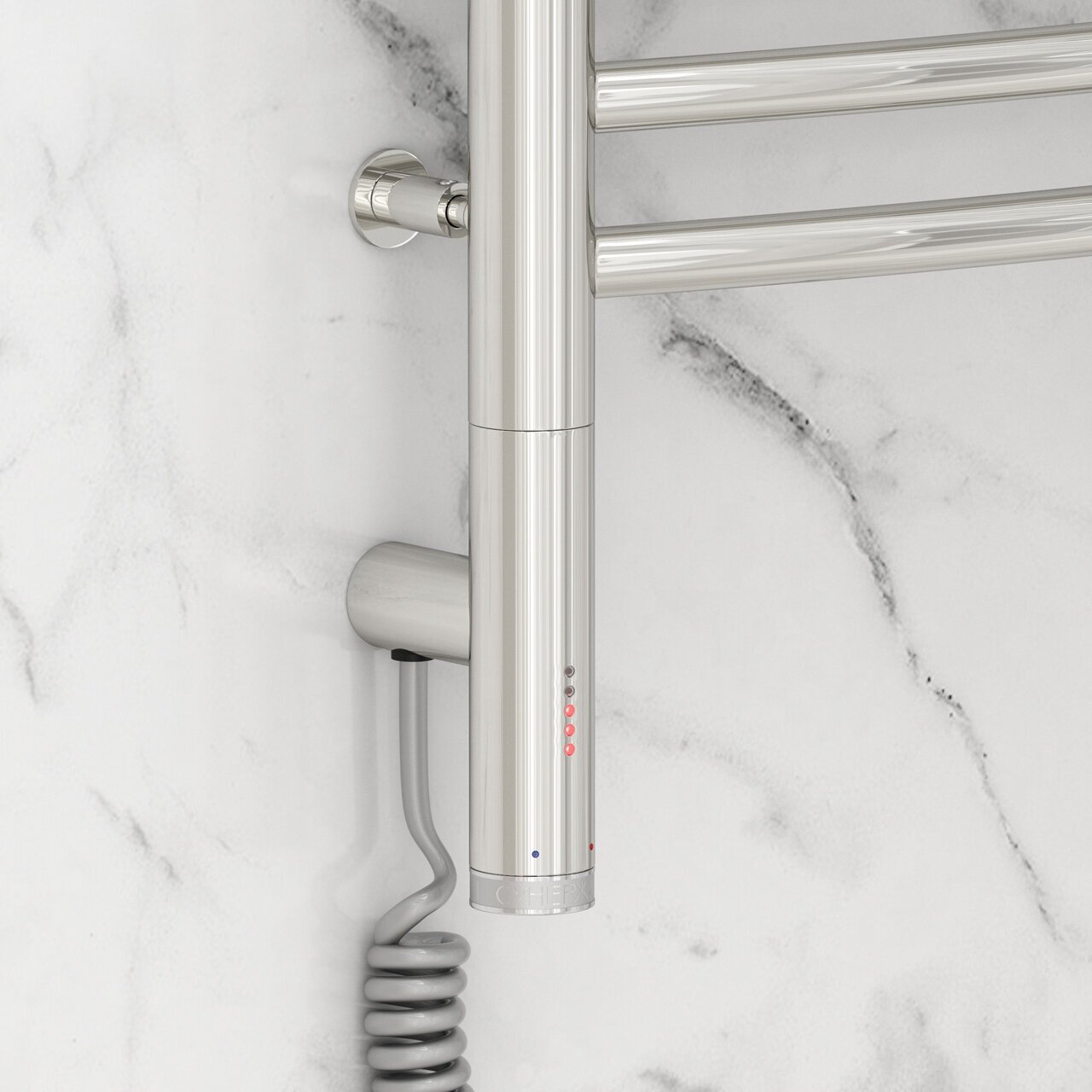 Богема 3.0 - электрический полотенцесушитель из нержавеющей стали, оснащённый многофункциональным блоком управления МЭМ Сунержа. Преимущество жидкостных моделей в том, что они обладают повышенной мощностью (до 300 Вт) и могут служить не только для сушки вещей, но и как полноценный прибор для обогрева большого помещения. МЭМ в этих моделях сконструирован так, что при достижении заданной температуры он отключается и по мере остывания включается и нагревается вновь. Благодаря такому режиму работы модуль помогает беречь электроэнергию. Режимы работы МЭМ - Поверните элемент управления, чтобы модуль начал работу - Каждый следующий поворот задаёт комфортную для вас температуру - Красные светодиоды не мигают и загораются по очереди в зависимости от заданного уровня температуры. - Если продолжить крутить поворотный элемент модуля, то модуль переходит в режим таймера. В этом случае температура остаётся неизменной на уровне 60 °C. - Каждый поворот задаёт время, в течение которого прибор будет беспрерывно работать, вплоть до пяти часов включительно. - Мигающие красные светодиоды оповестят вас о количестве часов, которое осталось до автоматического выключения прибора.
