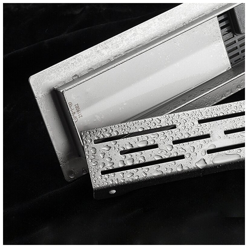 Душевой лоток GAPPO с размером решетки 700 мм. Этого размера вполне достаточно, чтобы обеспечить быстрый сток воды. Высоту можно регулировать, поэтому устанавливать его будет проще. Сделан из нержавеющей стали, поэтому прослужит не один десяток лет. Гидрозатвор — комбинированный, так же внутри есть фильтр. Все это будет препятствовать засорам, обратному стоку воду, неприятным запахам. Качественное и надежное решение для установки как дома так и в общественных местах.
