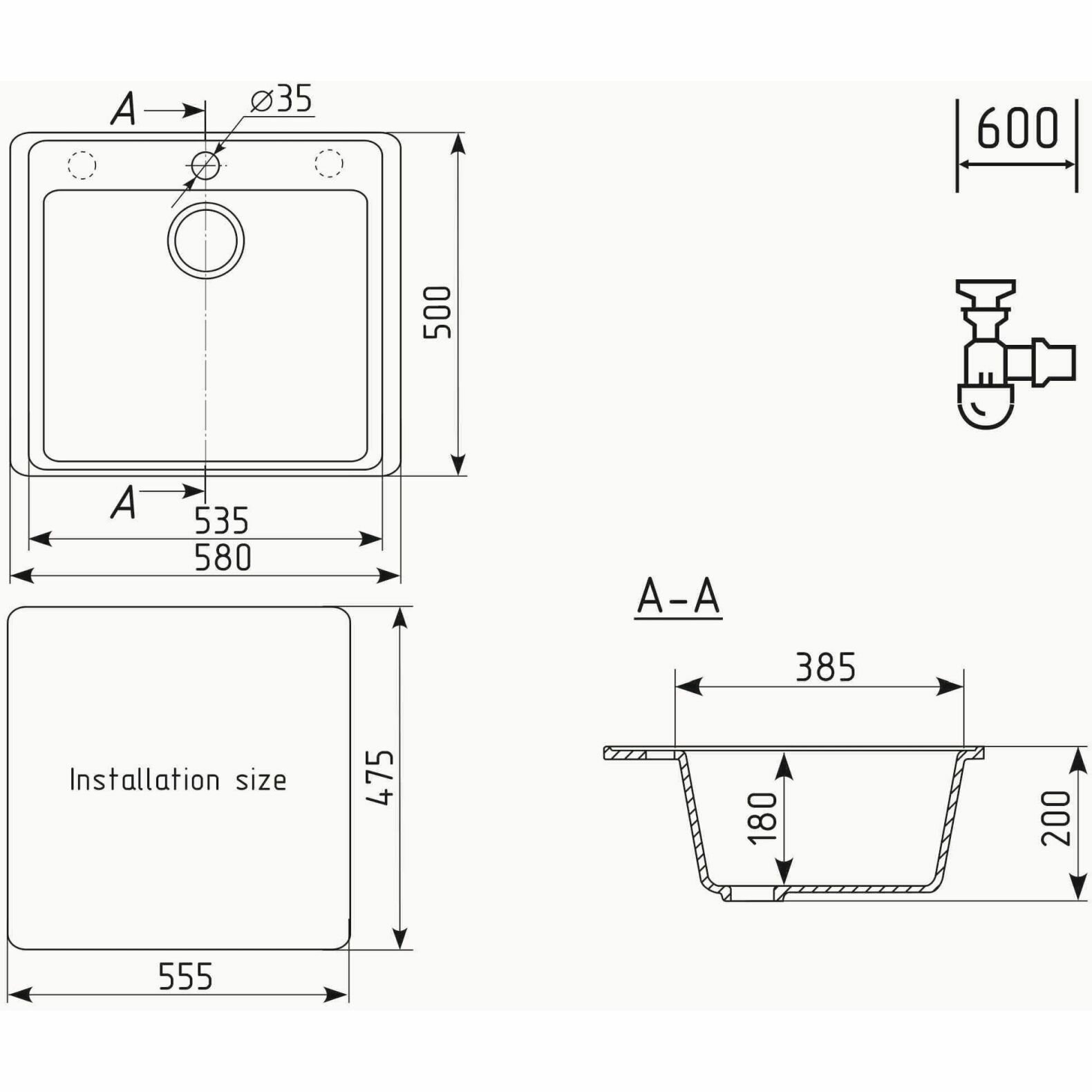 ULGRAN Quartz Forte 580 - квадратная кухонная мойка с увеличенной чашей, изготовленная на современном автоматизированном оборудовании из высококачественных кварцевых композитов по инжекционной технологии (литье под давлением). Кварцевый композит является поистине инновационным материалом в производстве кухонных моек! Он сочетает в себе такие неоспоримые преимущества как повышенная влагостойкость и термостойкость, возможность придать мойке при изготовлении практичный и функциональный дизайн, увеличенное сопротивление внешнему износу, снижение уровня шума при падении струи воды, безусловная гигиеничность и простота в уходе, а также сравнительно малый вес при высокой прочности. Мойка является односекционной, с отверстием под смеситель, при этом существуют 2 дополнительно намеченных отверстия под аксессуары (дозатор или клапан-автомат). Мойка устанавливается в кухонный шкаф шириной от 60 см. Данная мойка имеет современный эргономичный дизайн и очень практична, так как в ней легко мыть крупногабаритные предметы. В комплектацию входит сливная арматура серии " Элит" с гофротрубой, технический паспорт и гарантийный талон. Заводская гарантия составляет 5 лет, а срок службы данной мойки, при соблюдении основных правил ухода за ней, составляет более 20 лет.