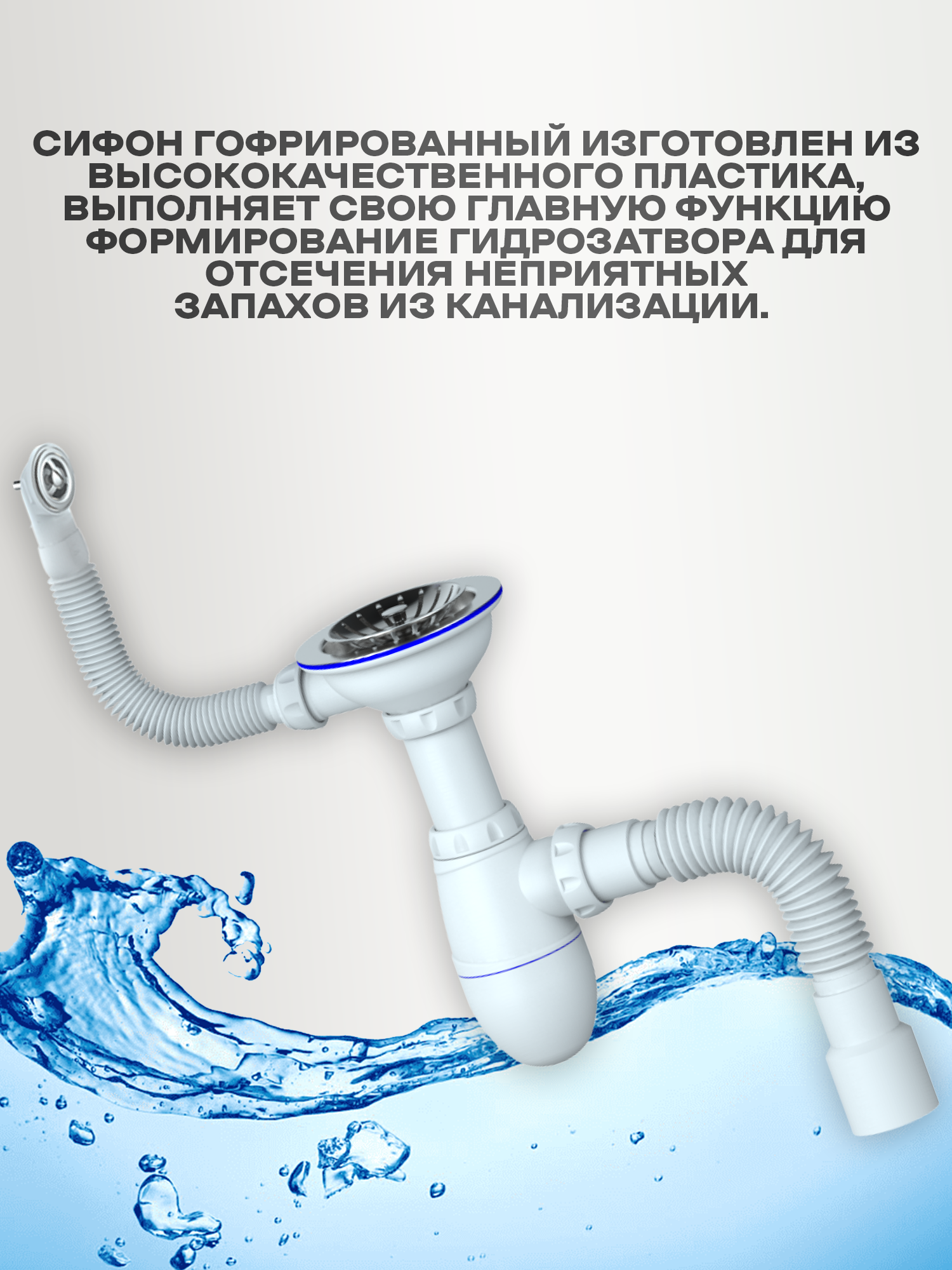 Сифон прост в установке и выполняет свою главную функцию - формирование гидрозатвора для отсечения неприятных запахов из канализации.