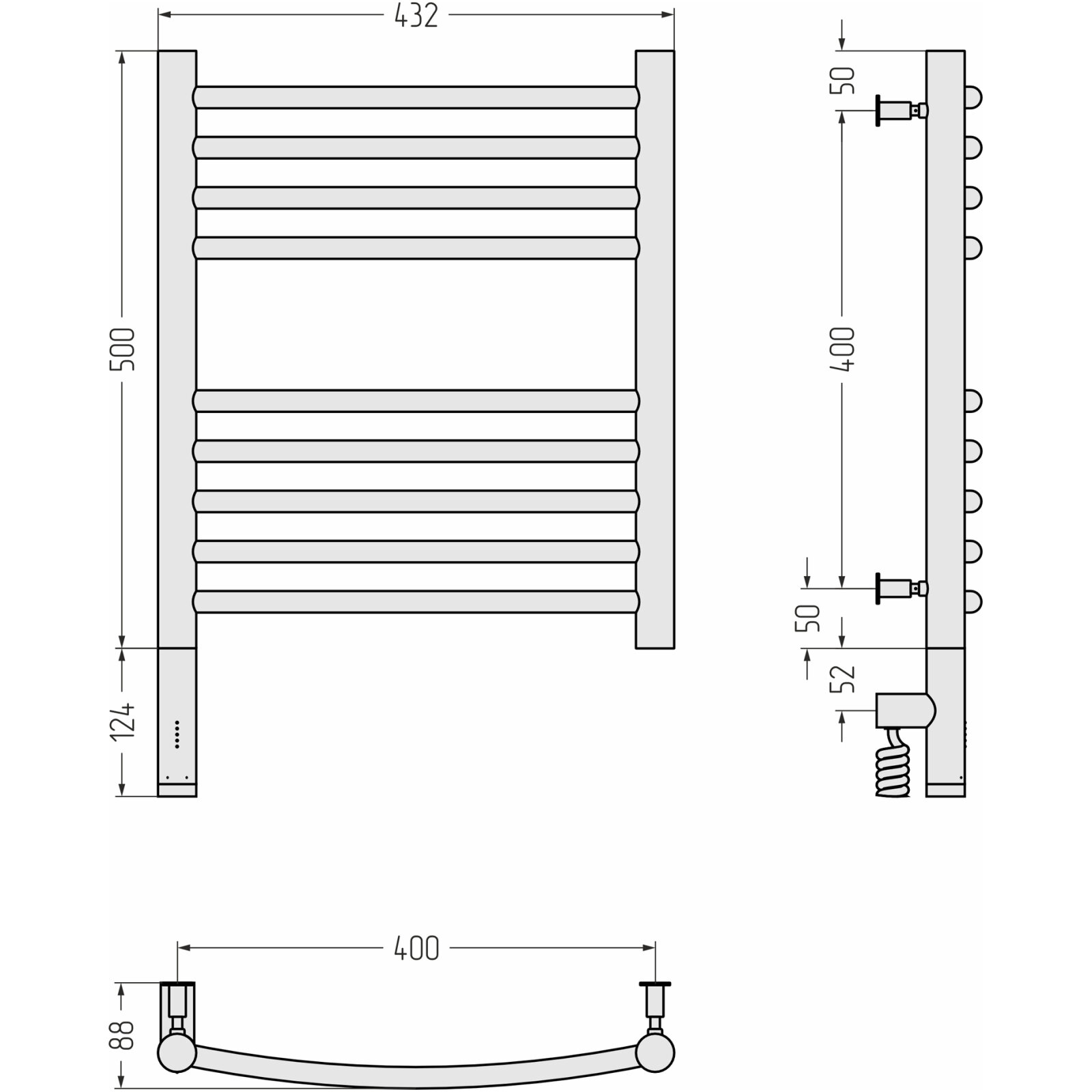Полотенцесушитель электрический Сунержа выгнутая Богема 3.0 50х40 L