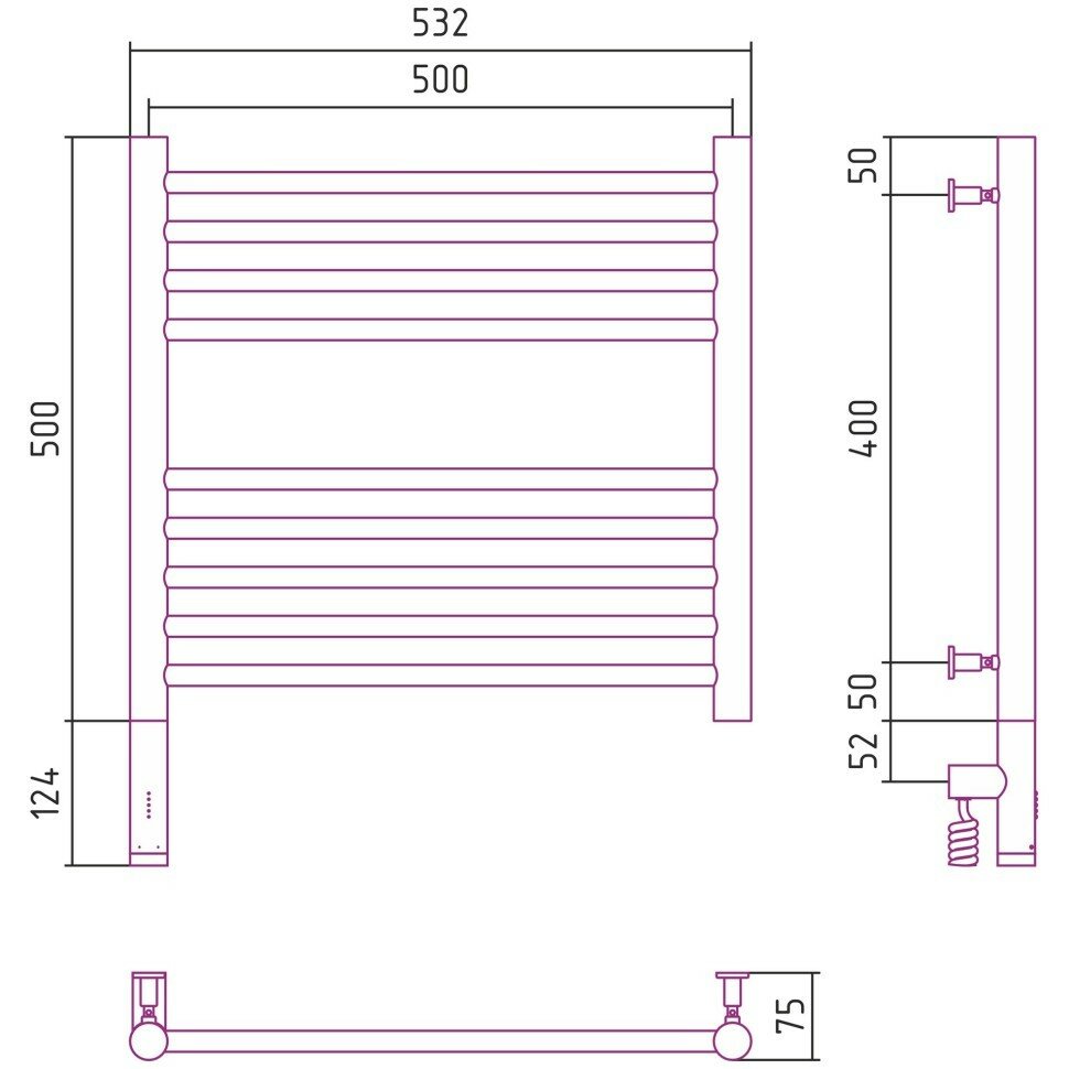 Полотенцесушитель электрический Сунержа прямая Богема 3.0 50х50 L
