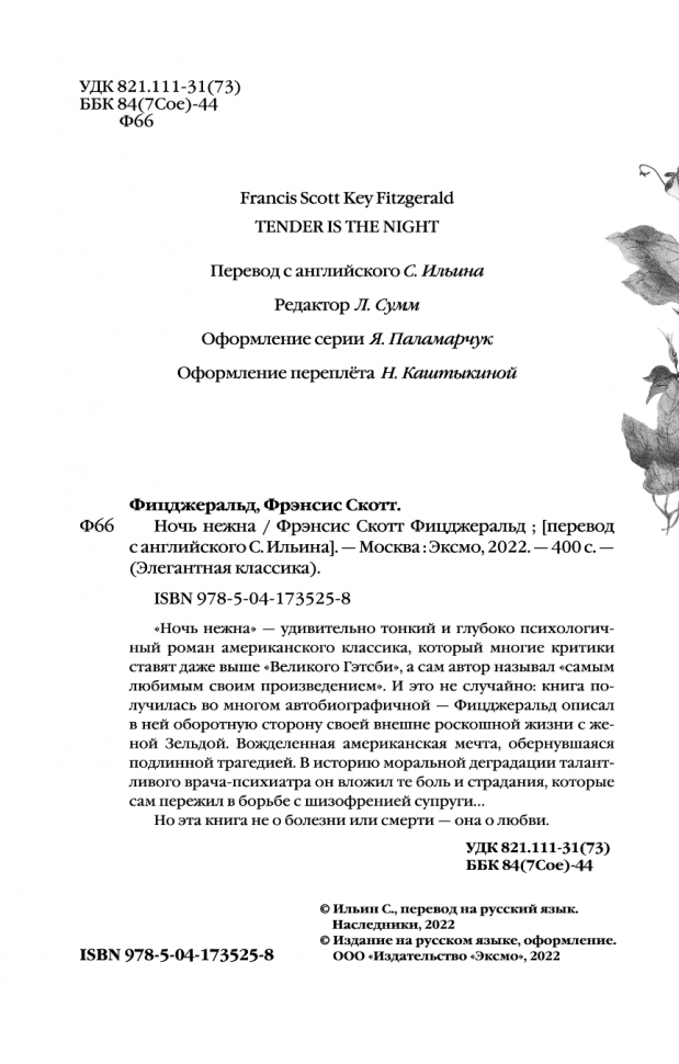 Книга: Ночь нежна (Френсис Скотт Фицджеральд); Эксмо, Редакция 1, 2023