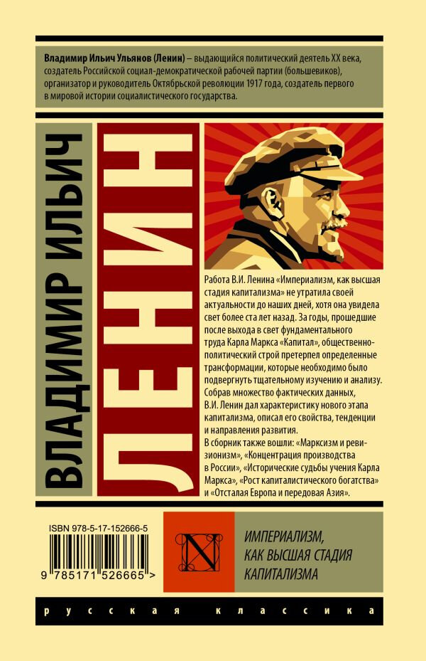 Безусловно, труды автора самого известного революционера 20-го века остаются популярными у многих читателей. "Империализм, как высшая стадия капитализма" В.И. Ленина развивает теорию К.Маркса о существующем социально-экономическом устройстве мира, обнажает его проблемы, закономерности и характерные противоречия, некоторые из которых актуальны и по сей день. Книга будет интересна не только читателям, знакомым с марксизмом, но и обычным людям, так как в книге пронализированы весьма интересные статистические данные со всего мира, позволяющие дать глубокое представление о человеческом обществе на рубеже 19-20 веков.