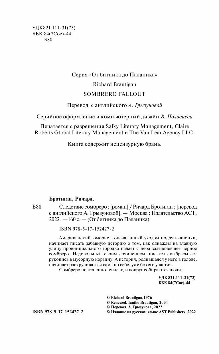 Книга: Следствие сомбреро (Ричард Бротиган); Издательство АСТ, 1976
