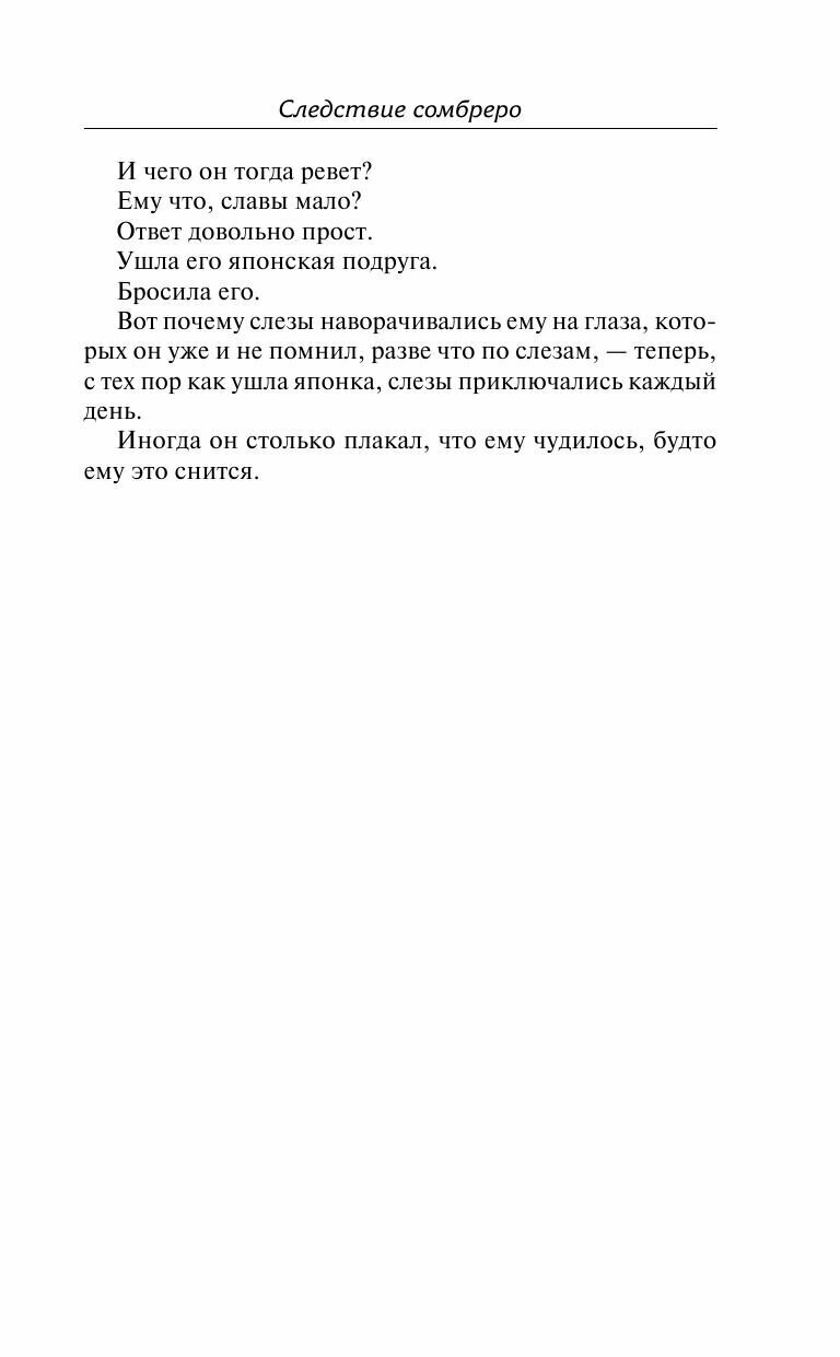 Ричард Бротиган является знаковой фигурой контркультуры. Читая его произведения всегда можно быть уверенными в том, что это будет не только интересно, но и познавательно. Следствие сомбреро не стало исключением, это увлекательный рассказ о том, как одна очень незначительная деталь может ввергнут в хаос целый город. Понравилось!